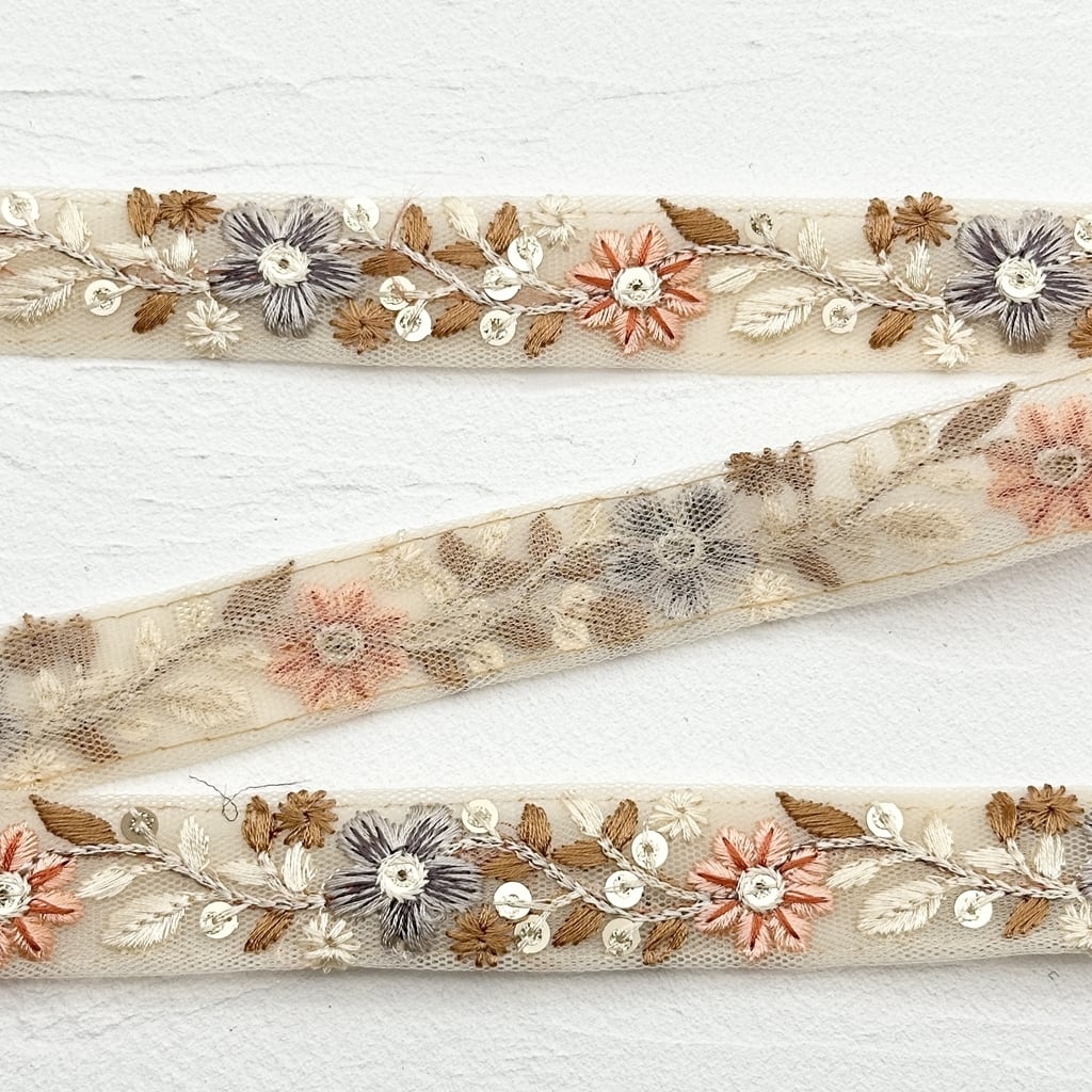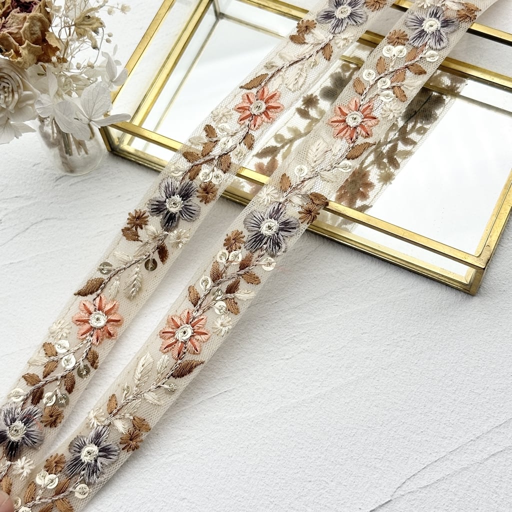 1ロール フラワーピュア [ベージュ]インド刺繍リボン 1805-1R