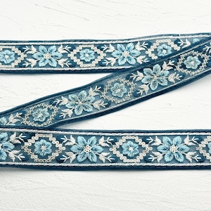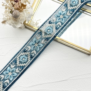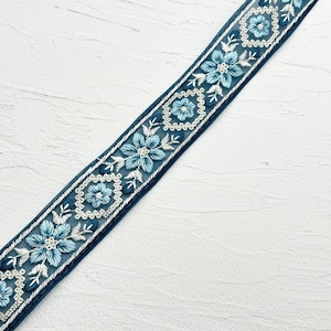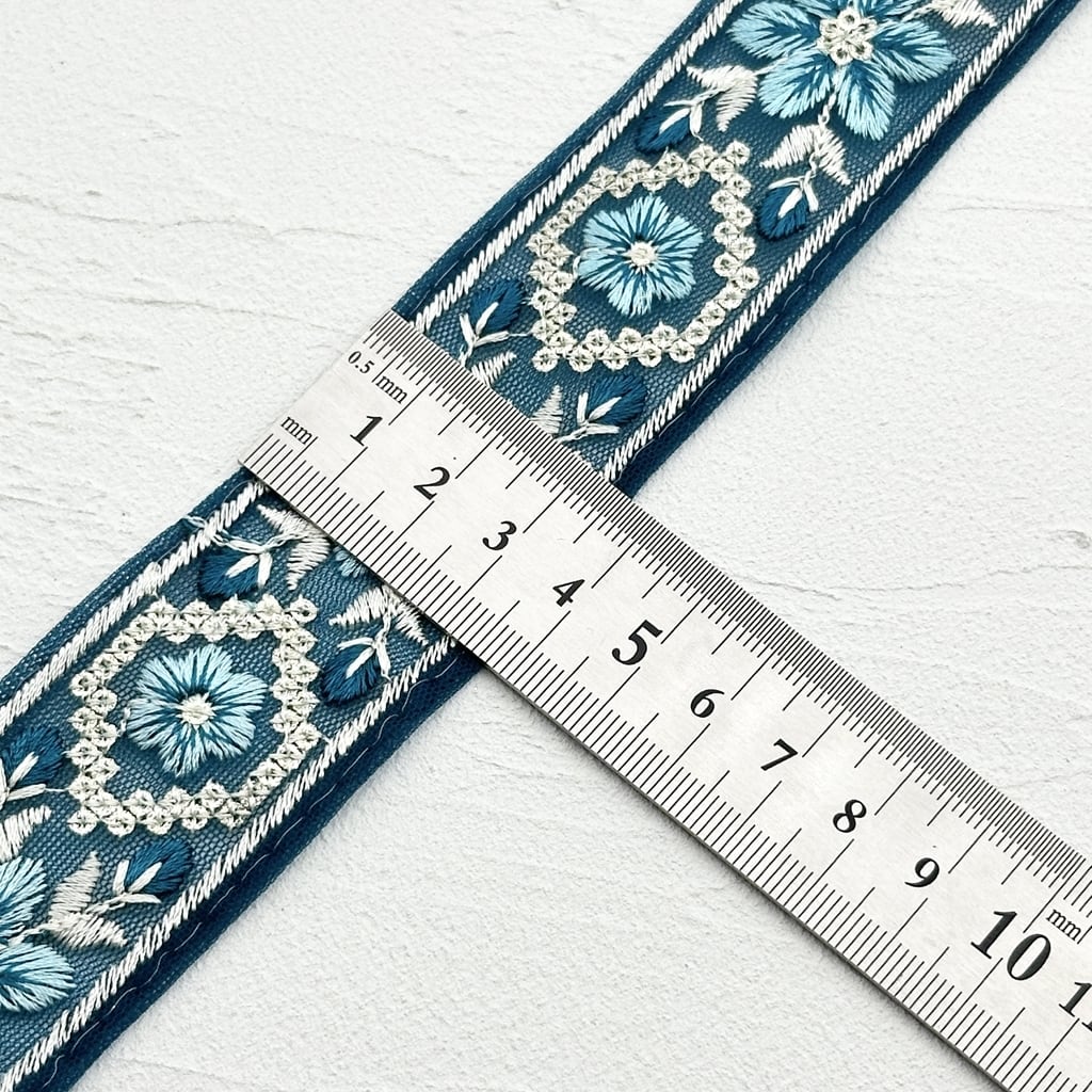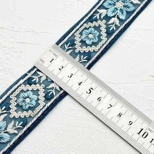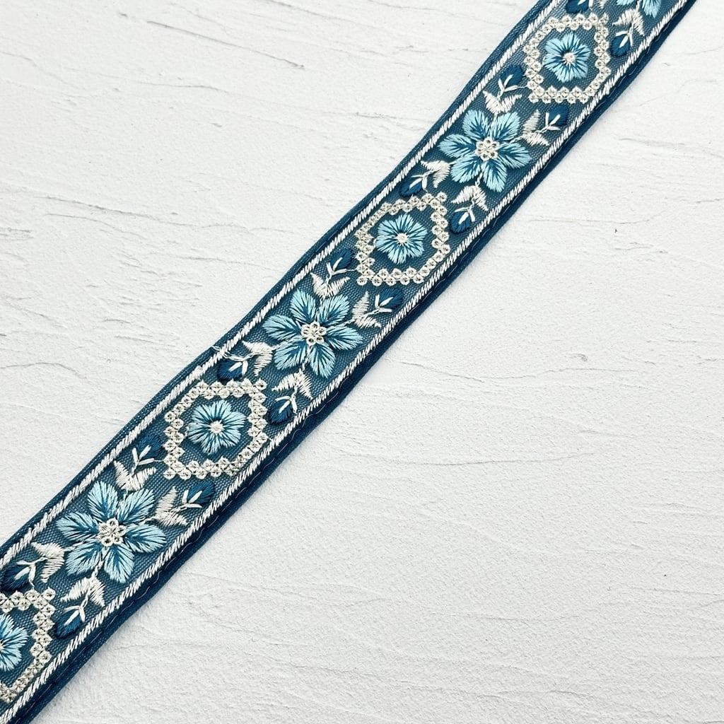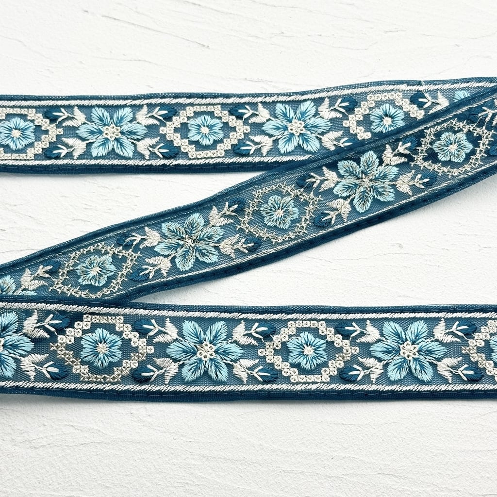 1ロール パステルフローラル [ターコイズ]インド刺繍リボン 1827-1R