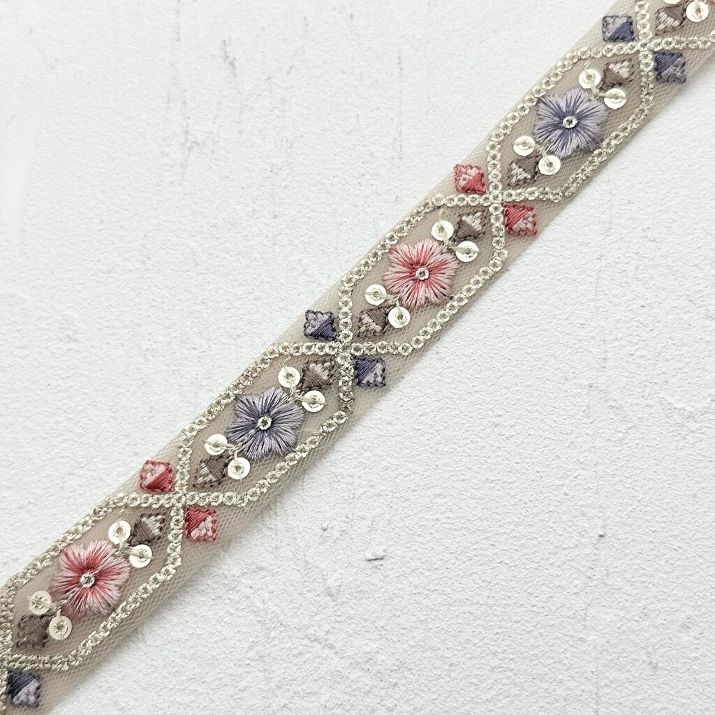 1ロール パステルシャイン[ピンクベージュ]インド刺繍リボン 2165-1R