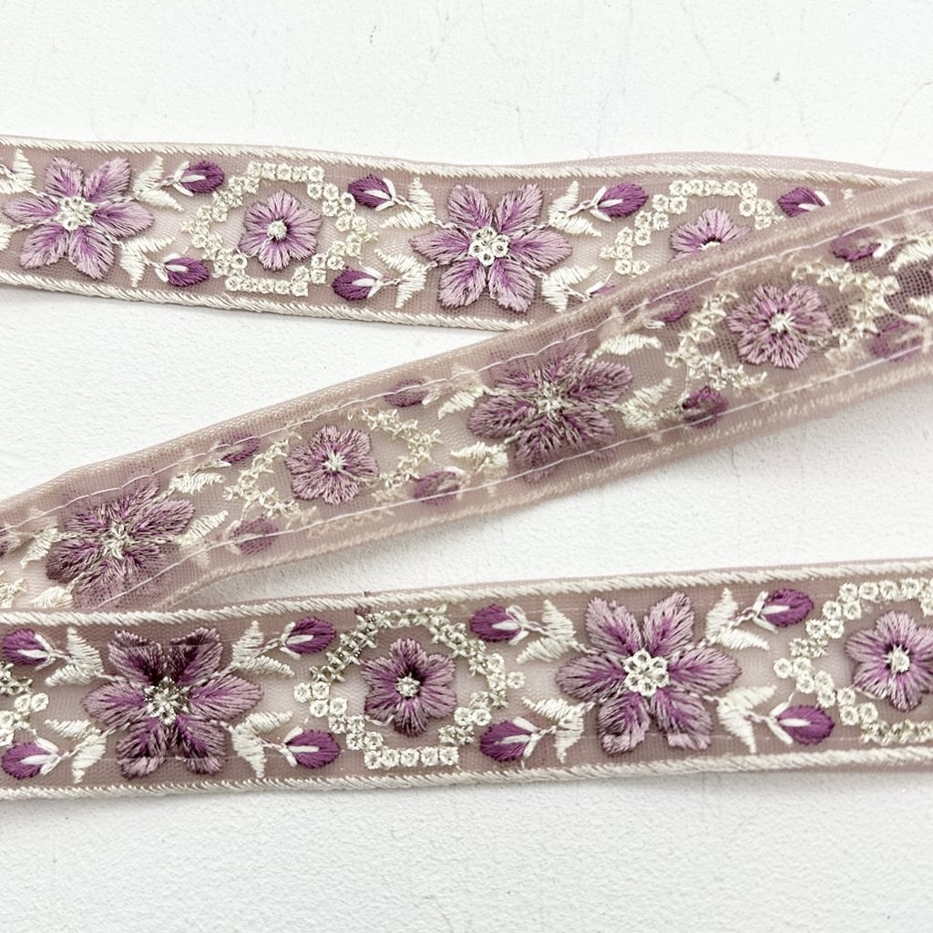 パステルフローラル [グレープ]インド刺繍リボン 2749