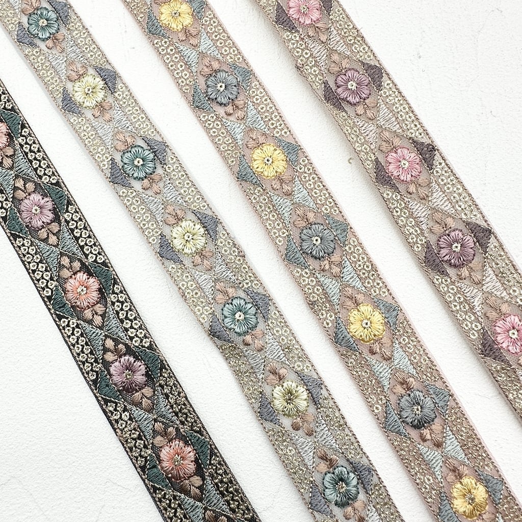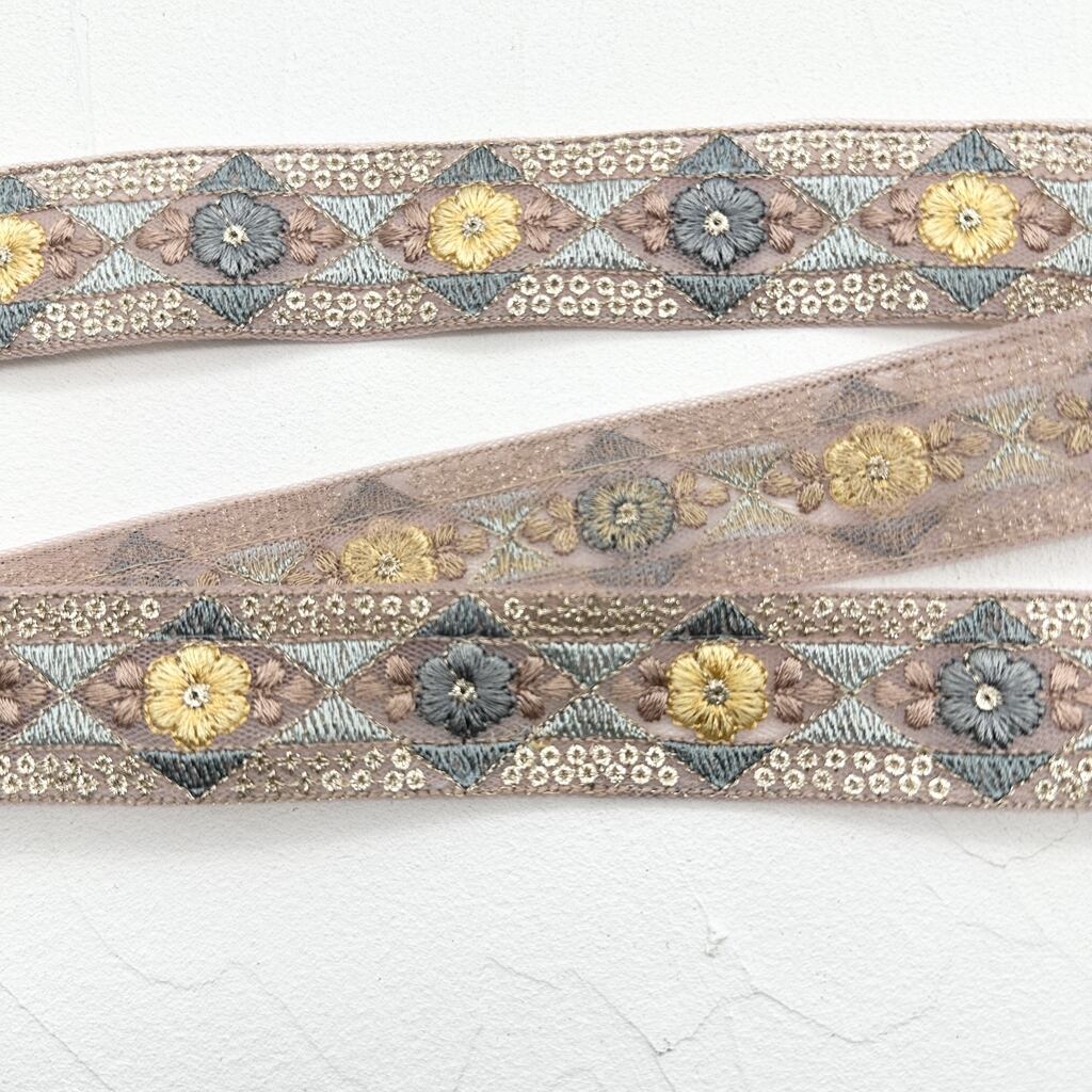 モダンフラワー [イエローくすみピンク]インド刺繍リボン 2673