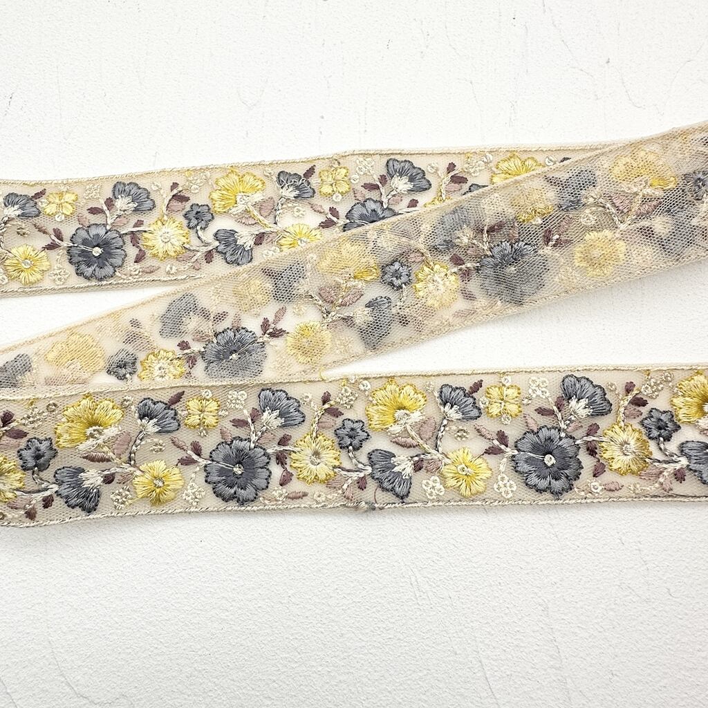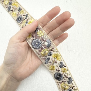 リリアン [イエローベージュ]インド刺繍リボン 2764