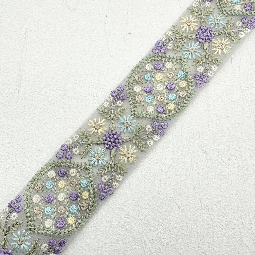 インド刺繍リボンは、細かい刺繍が施されていて色も鮮やかなリボンです。