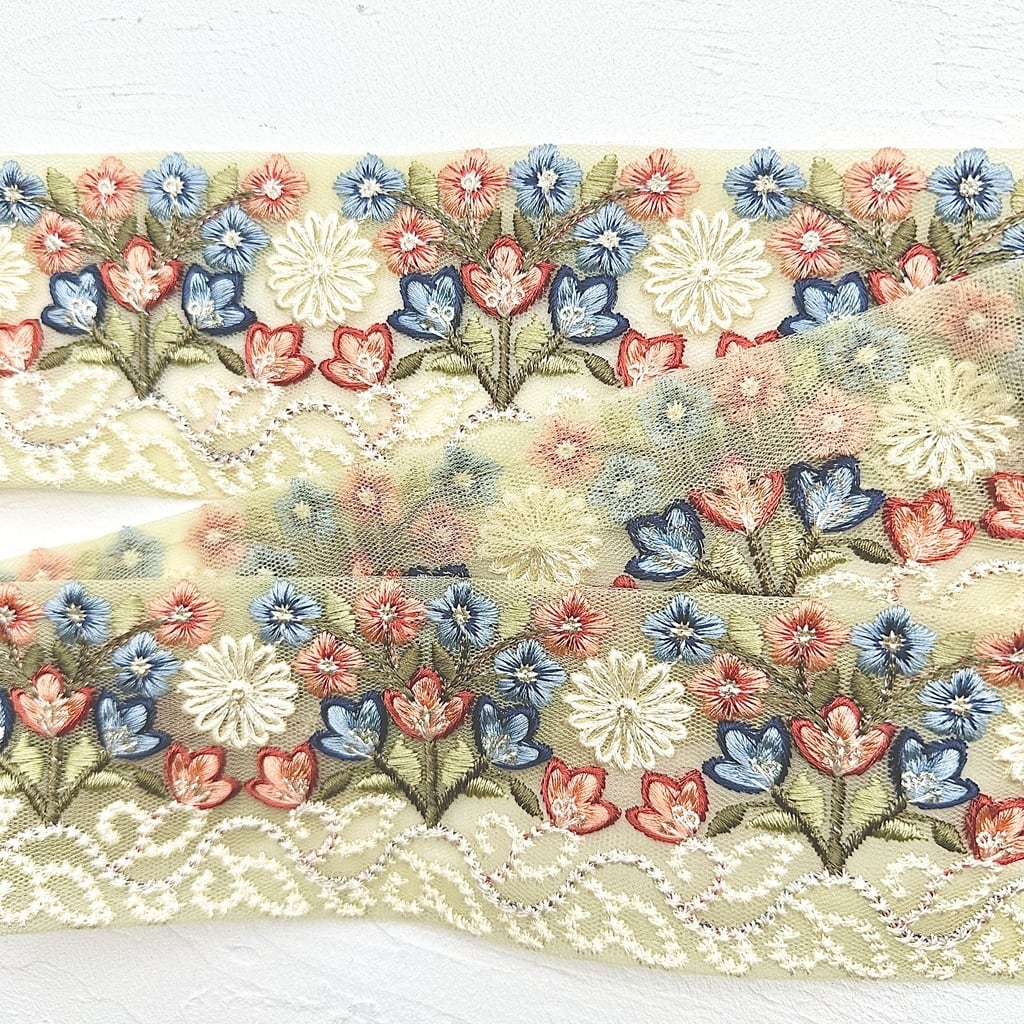 インド刺繍リボンは、細かい刺繍が施されていて色も鮮やかなリボンです。