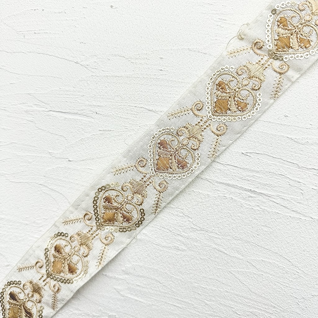 ハートモーメント [ホワイト]インド刺繍リボン 2812