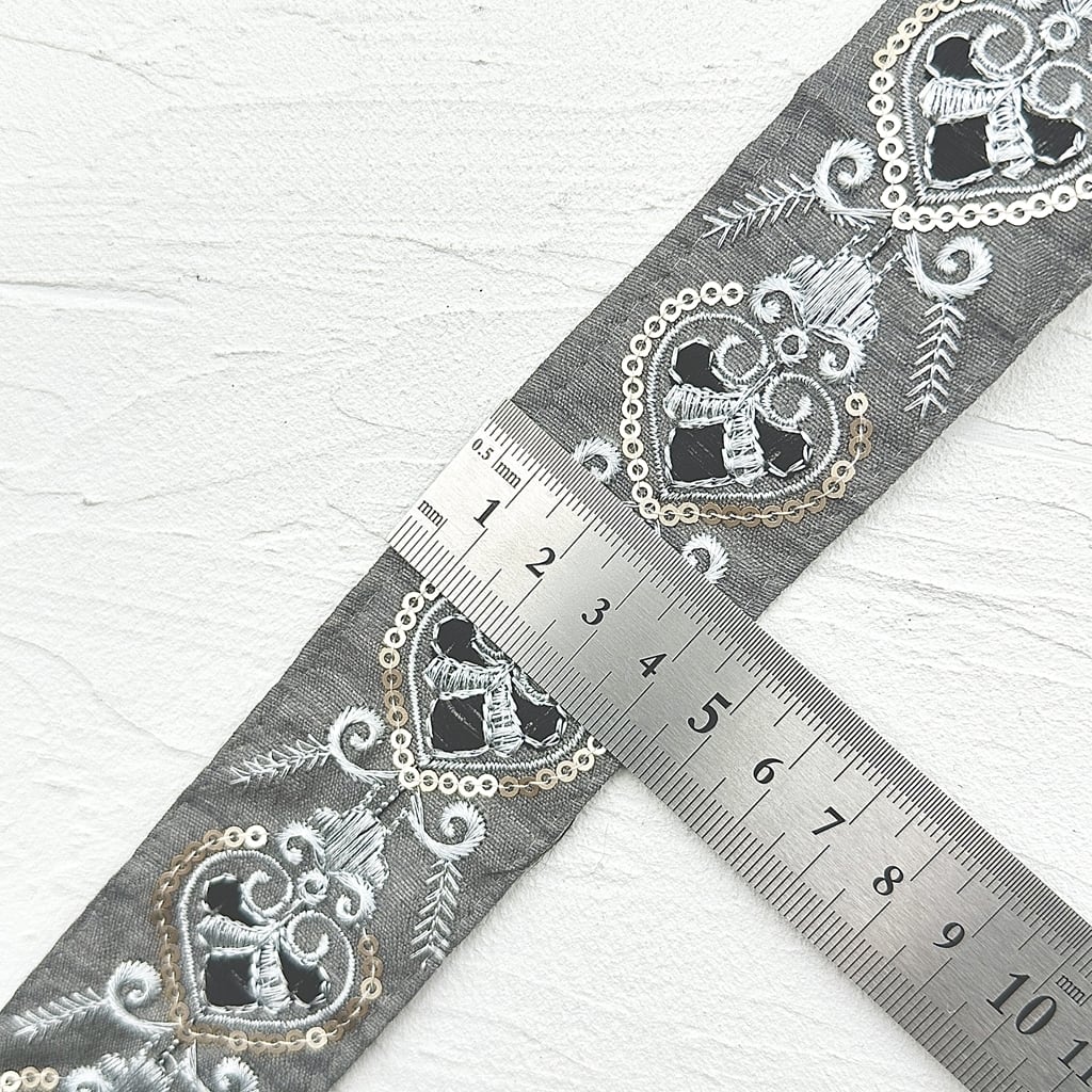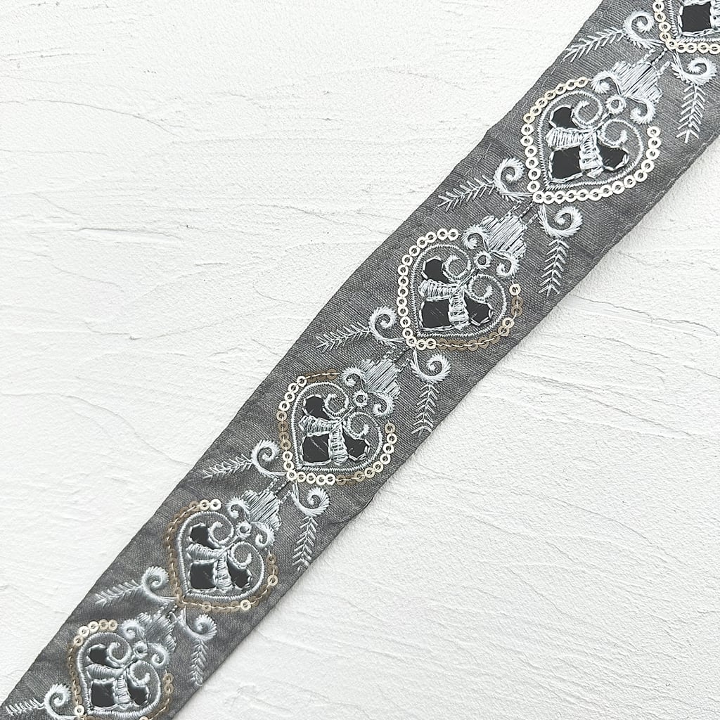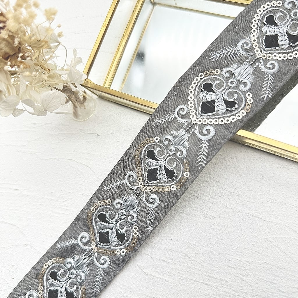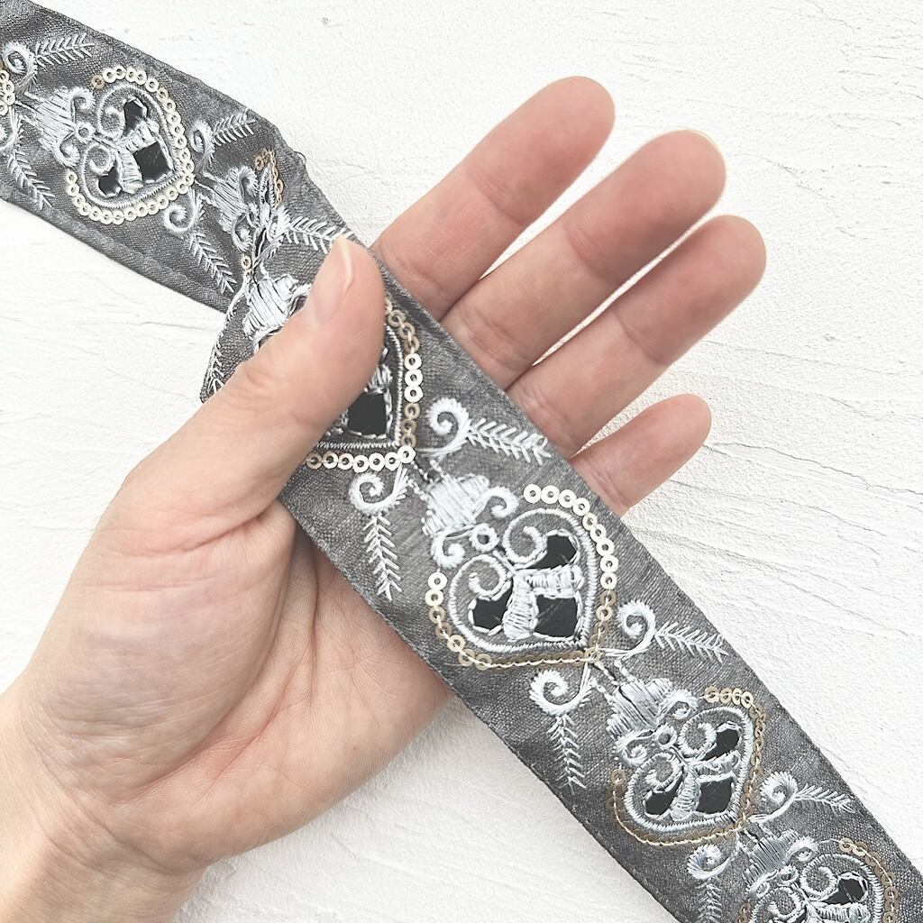 ハートモーメント [グレー]インド刺繍リボン 2813