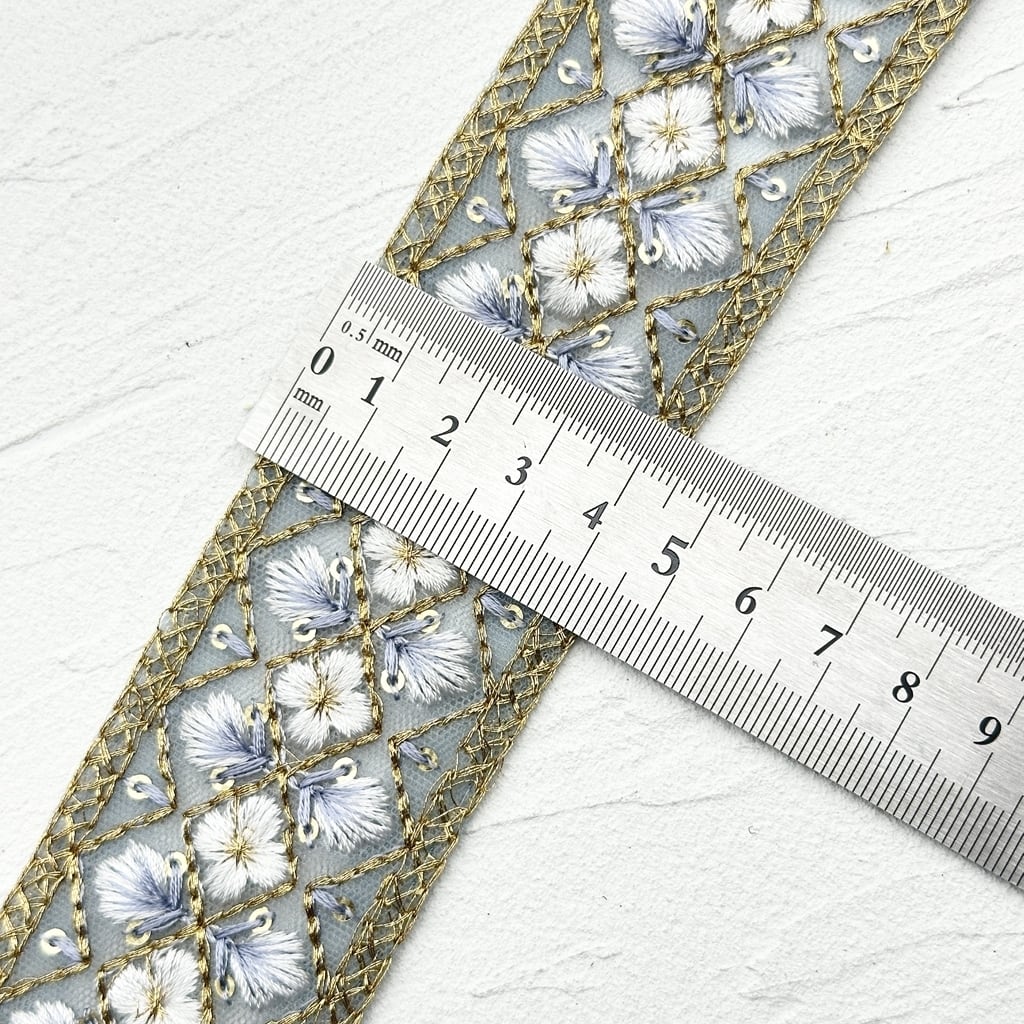 モザイク チュール[サックス]インド刺繍リボン 2837