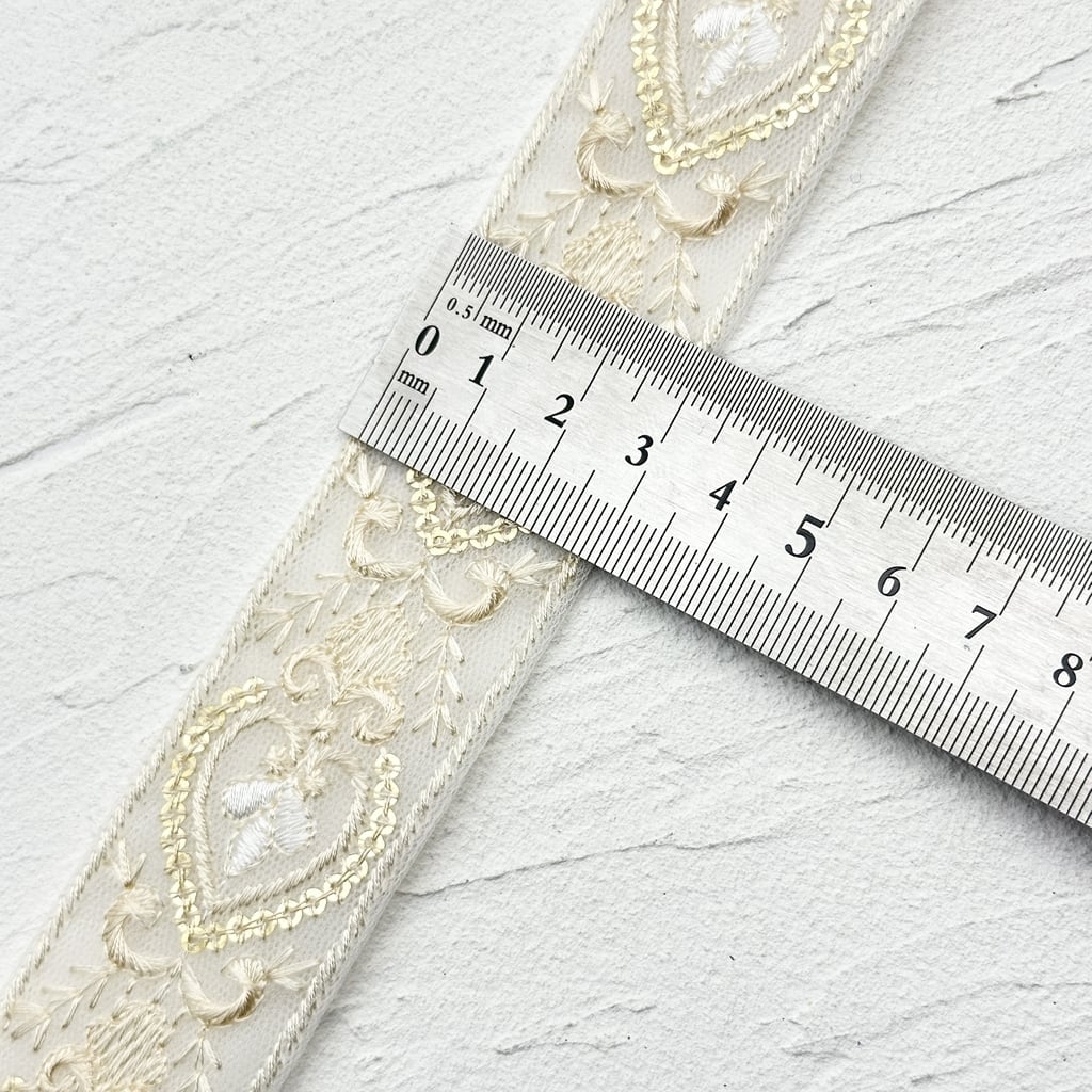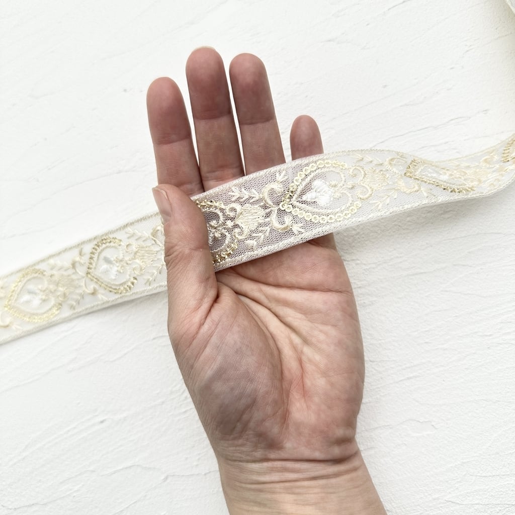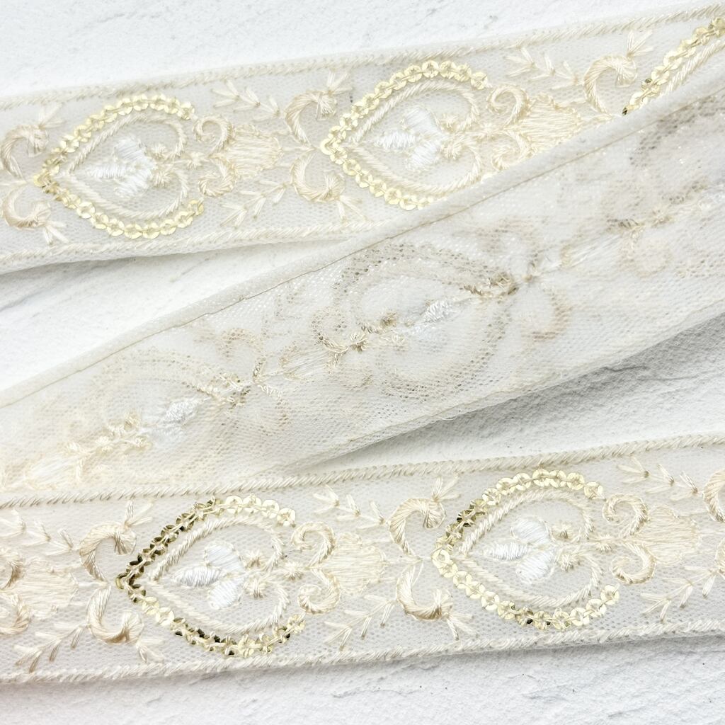 プレシャスハート [アイボリー]インド刺繍リボン 2863