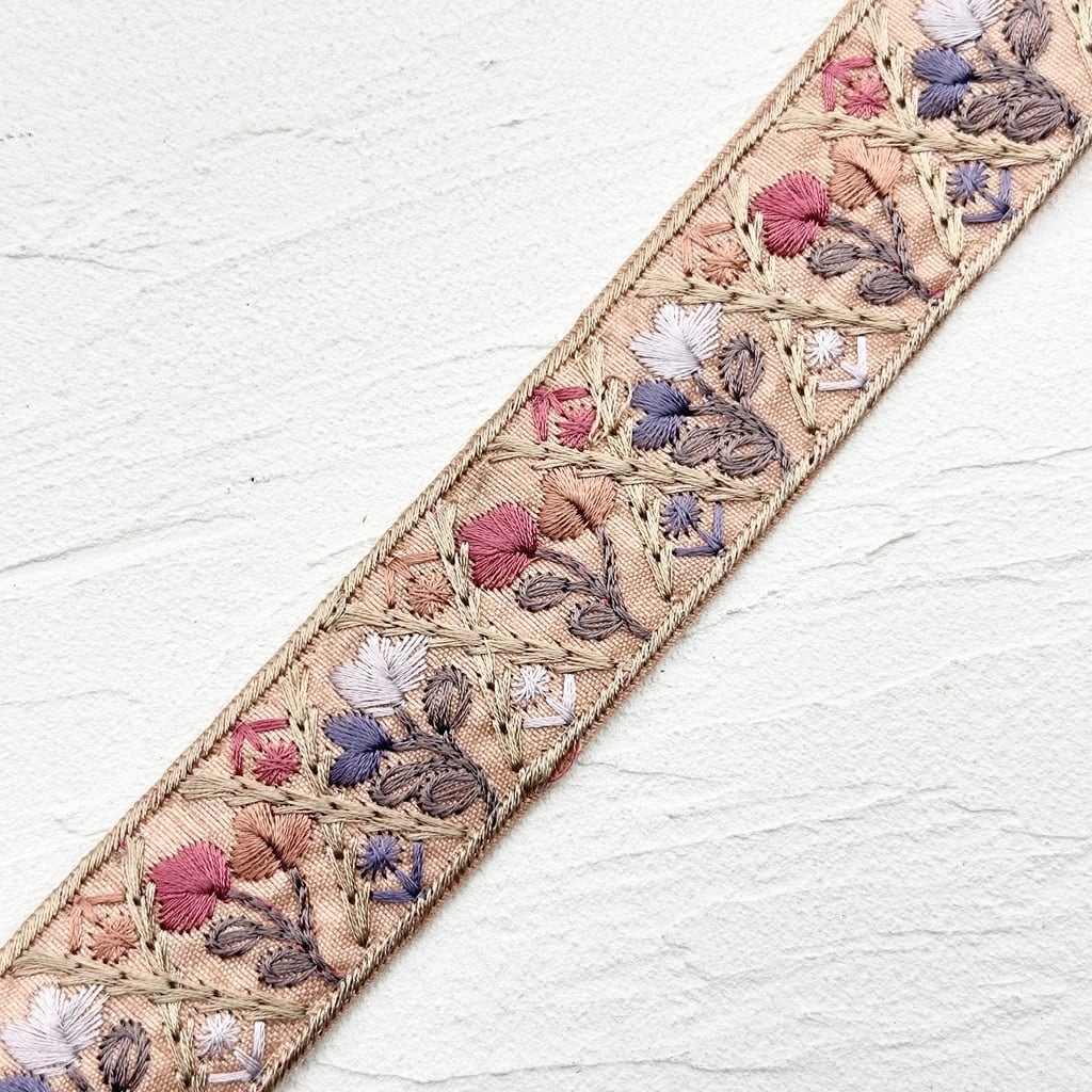パステルクロスNEW [サーモンピンク]インド刺繍リボン 2989