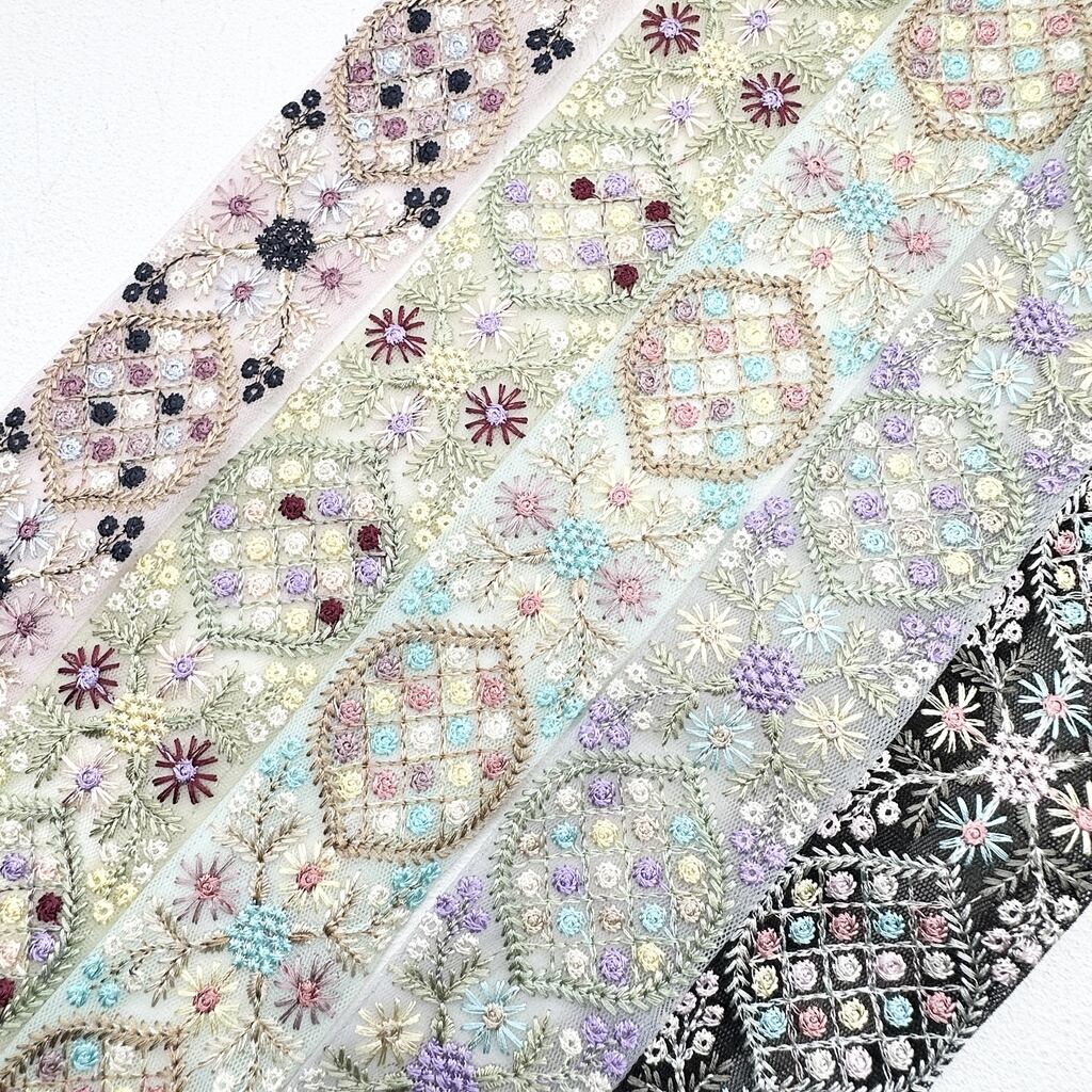 インド刺繍リボンは、細かい刺繍が施されていて色も鮮やかなリボンです。