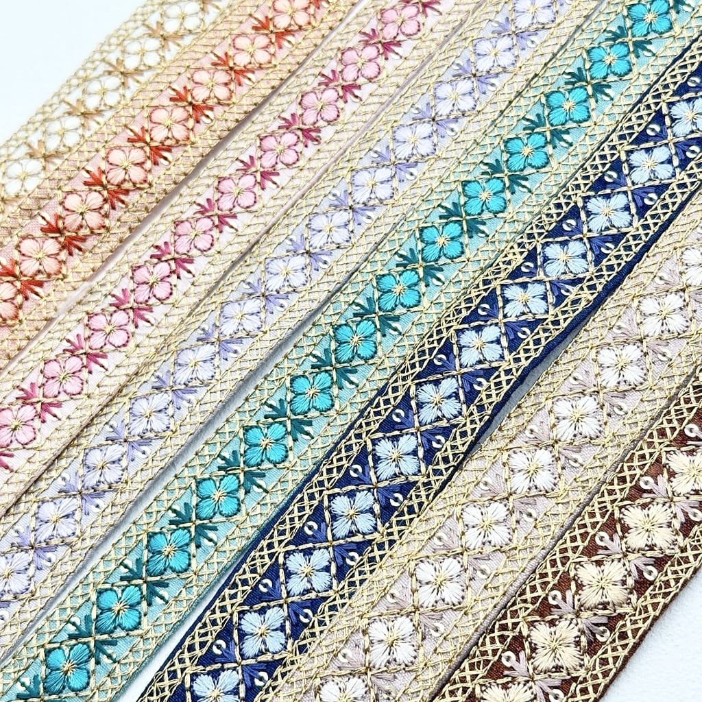 インド刺繍リボンは、細かい刺繍が施されていて色も鮮やかなリボンです。