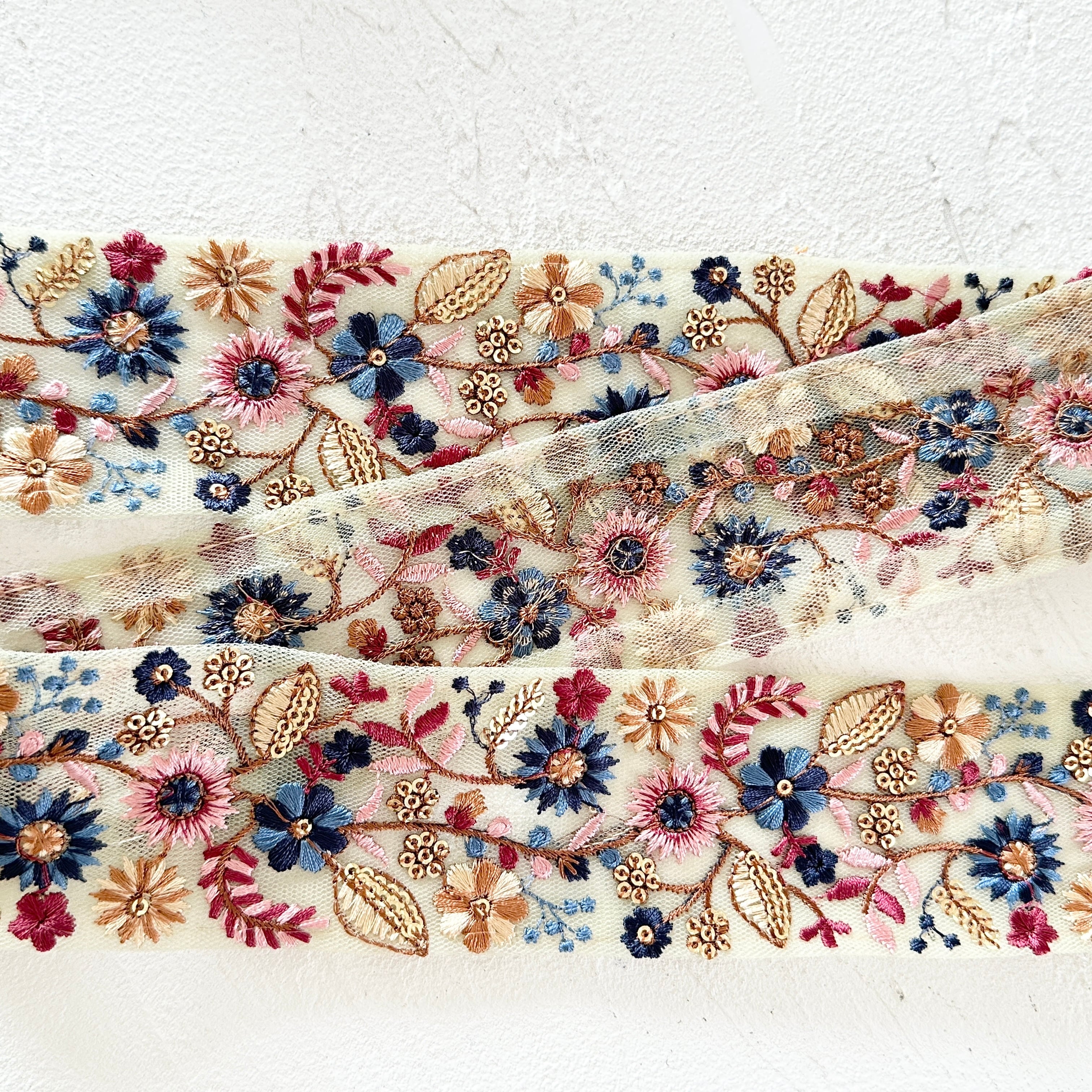 インド刺繍リボンは、細かい刺繍が施されていて色も鮮やかなリボンです。