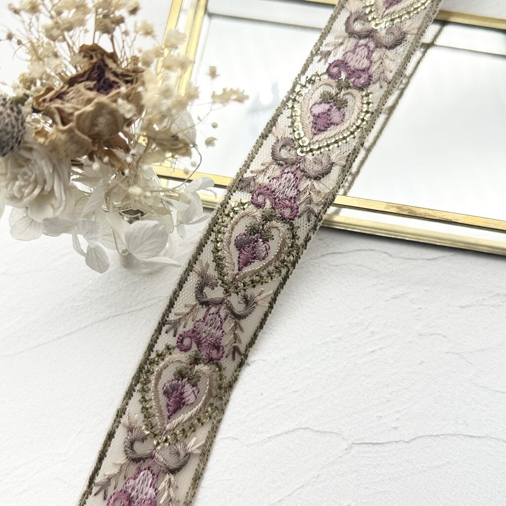 インド刺繍リボンは、細かい刺繍が施されていて色も鮮やかなリボンです。