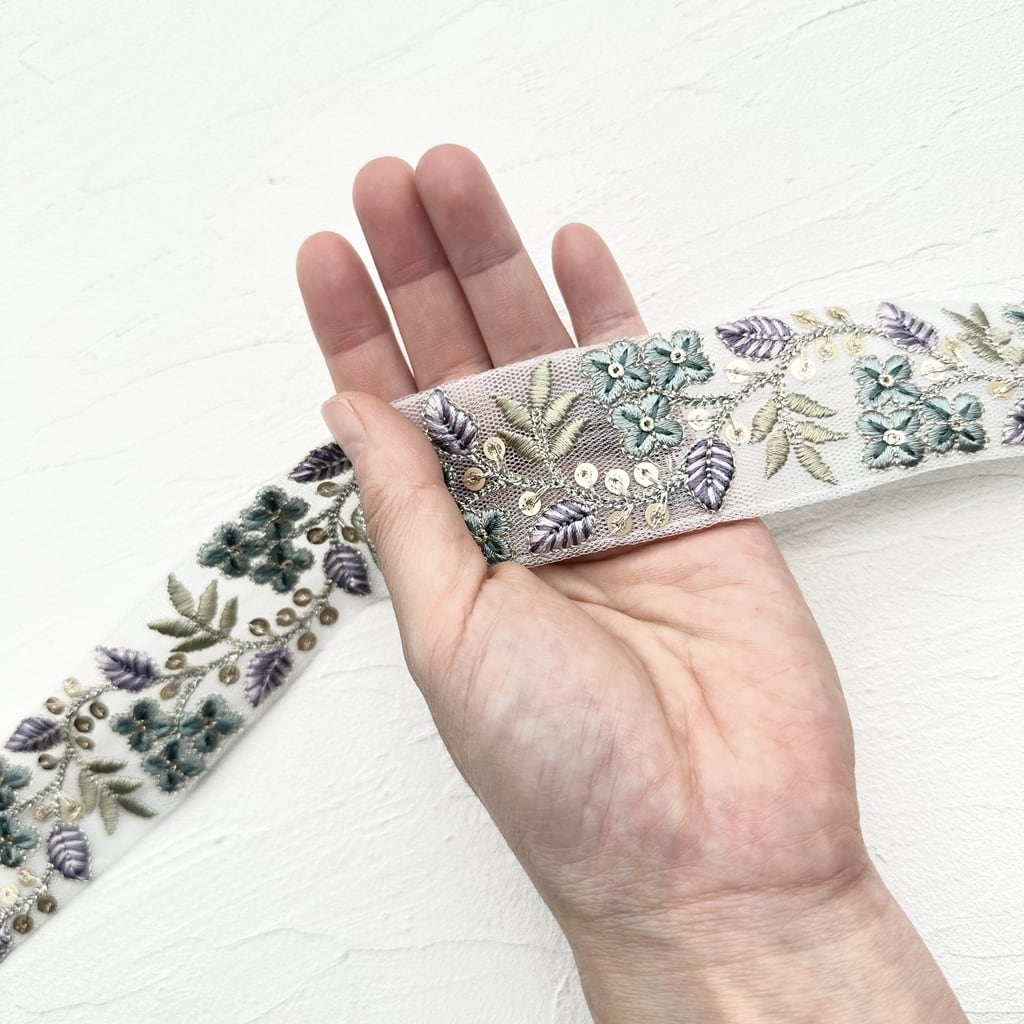 インド刺繍リボンは、細かい刺繍が施されていて色も鮮やかなリボンです。