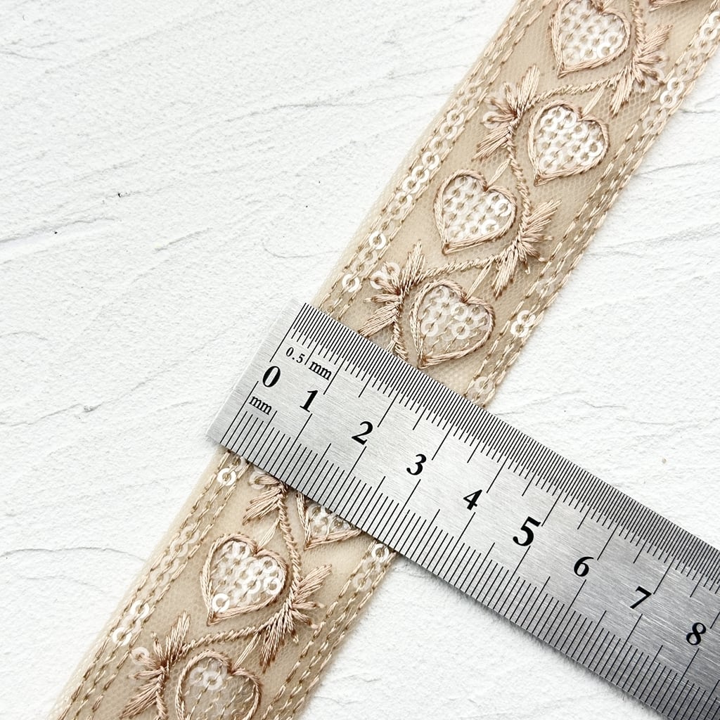 キュートハート [ベージュ]インド刺繍リボン 2888