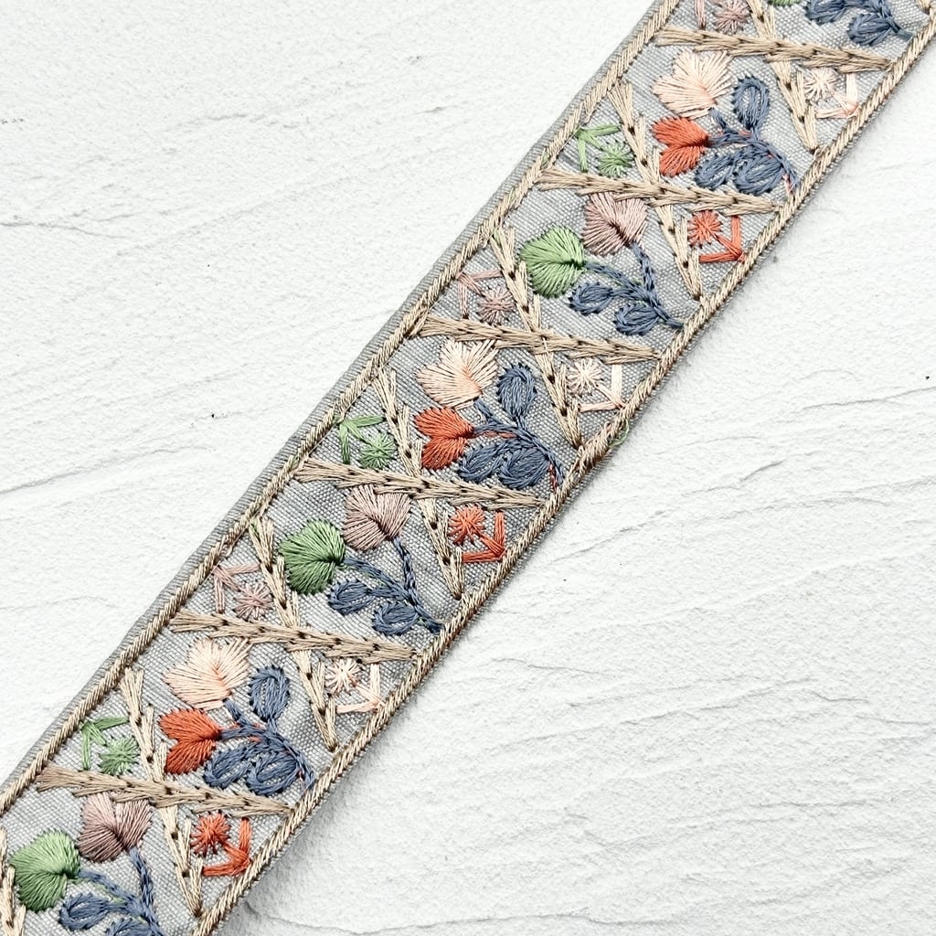 1ロール パステルクロスNEW [グレー]インド刺繍リボン 2986-1R