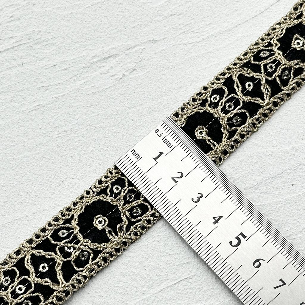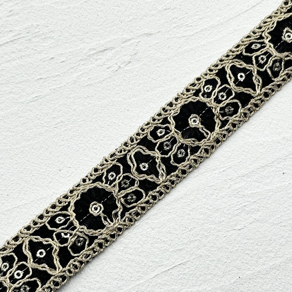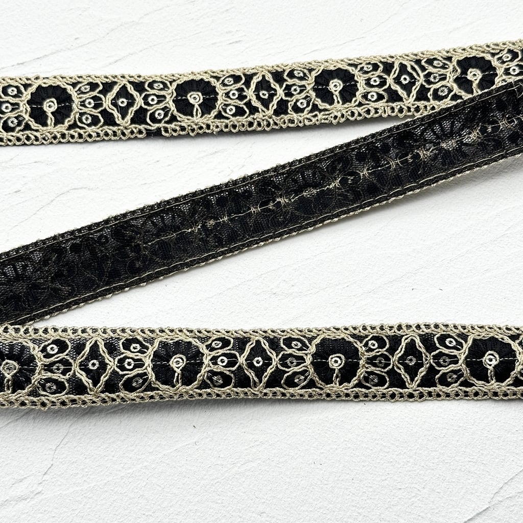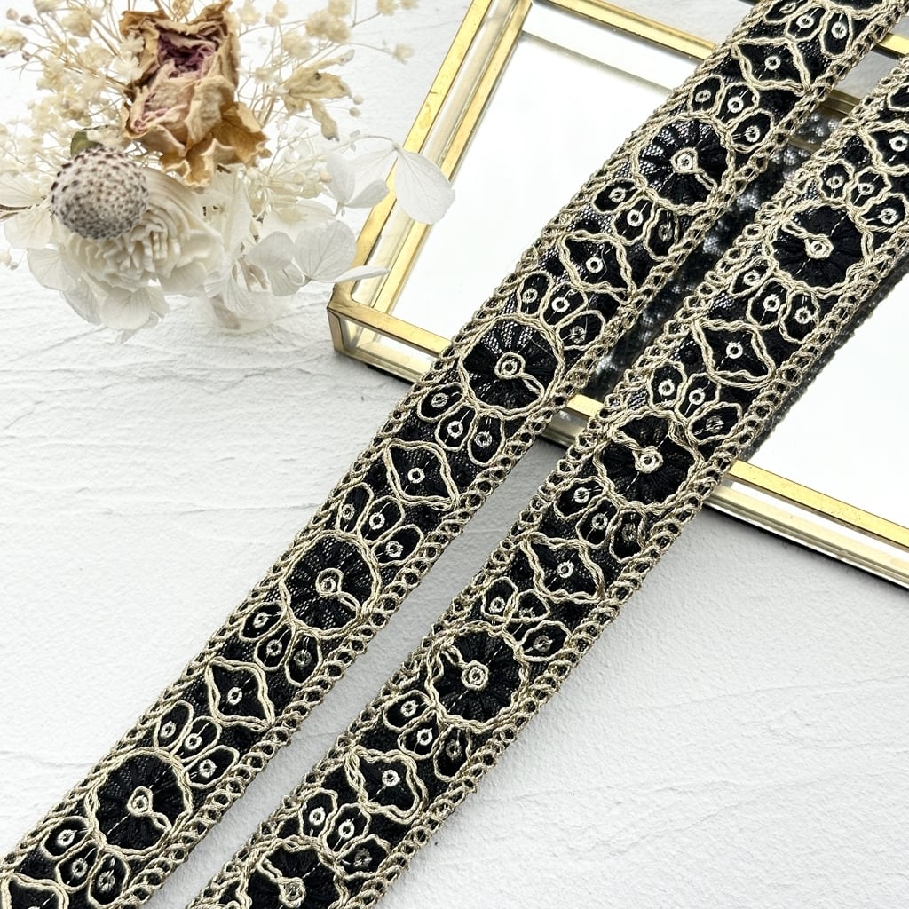 1ロール ロイヤルクールミニ [ブラック]インド刺繍リボン 1711-1R