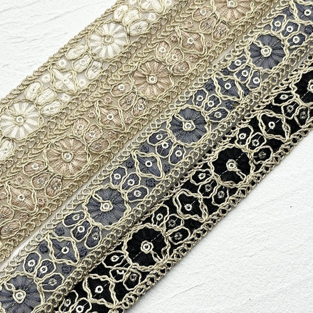 インド刺繍リボンは、細かい刺繍が施されていて色も鮮やかなリボンです。