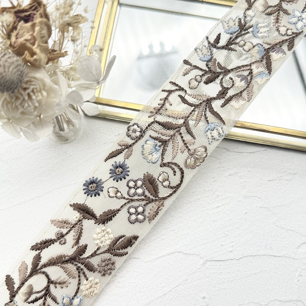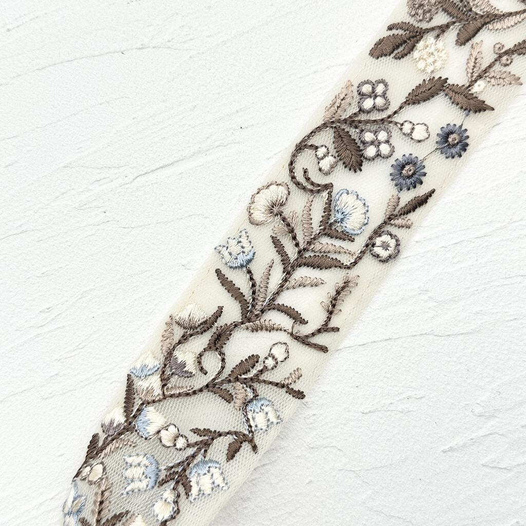 カラフルブロッサムスリム [ブラウン]インド刺繍リボン 3071