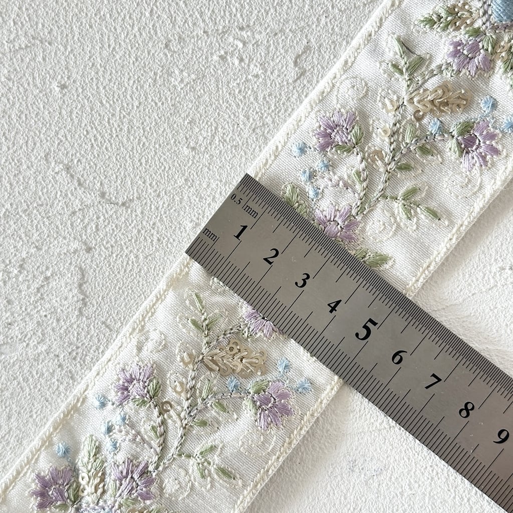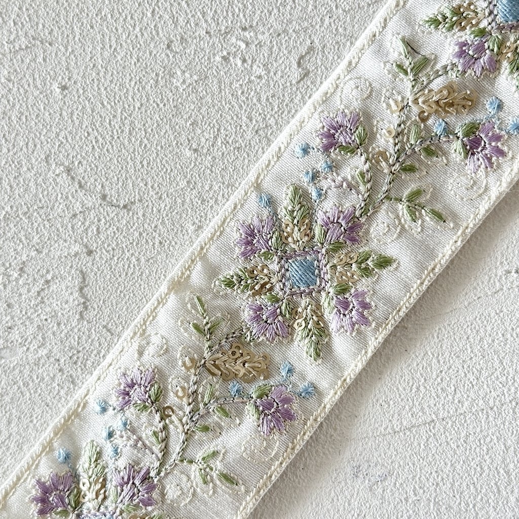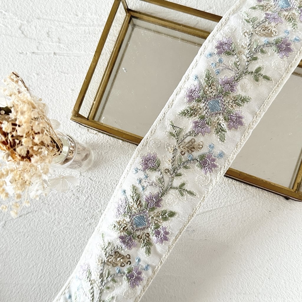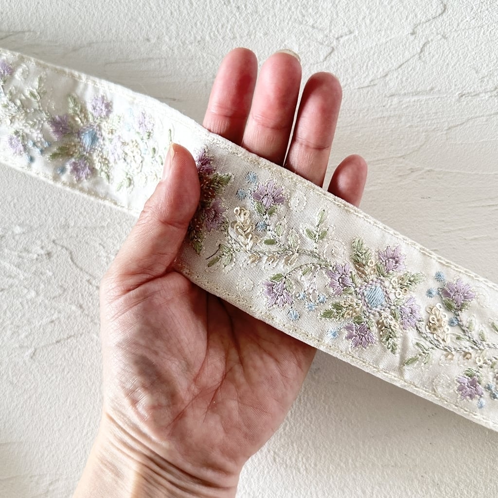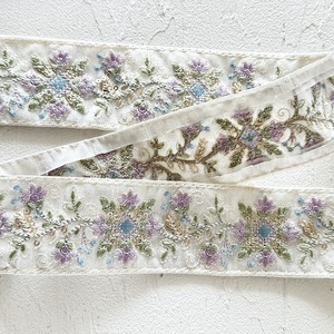 ライラックシャイン [布アイボリー]インド刺繍リボン 3086