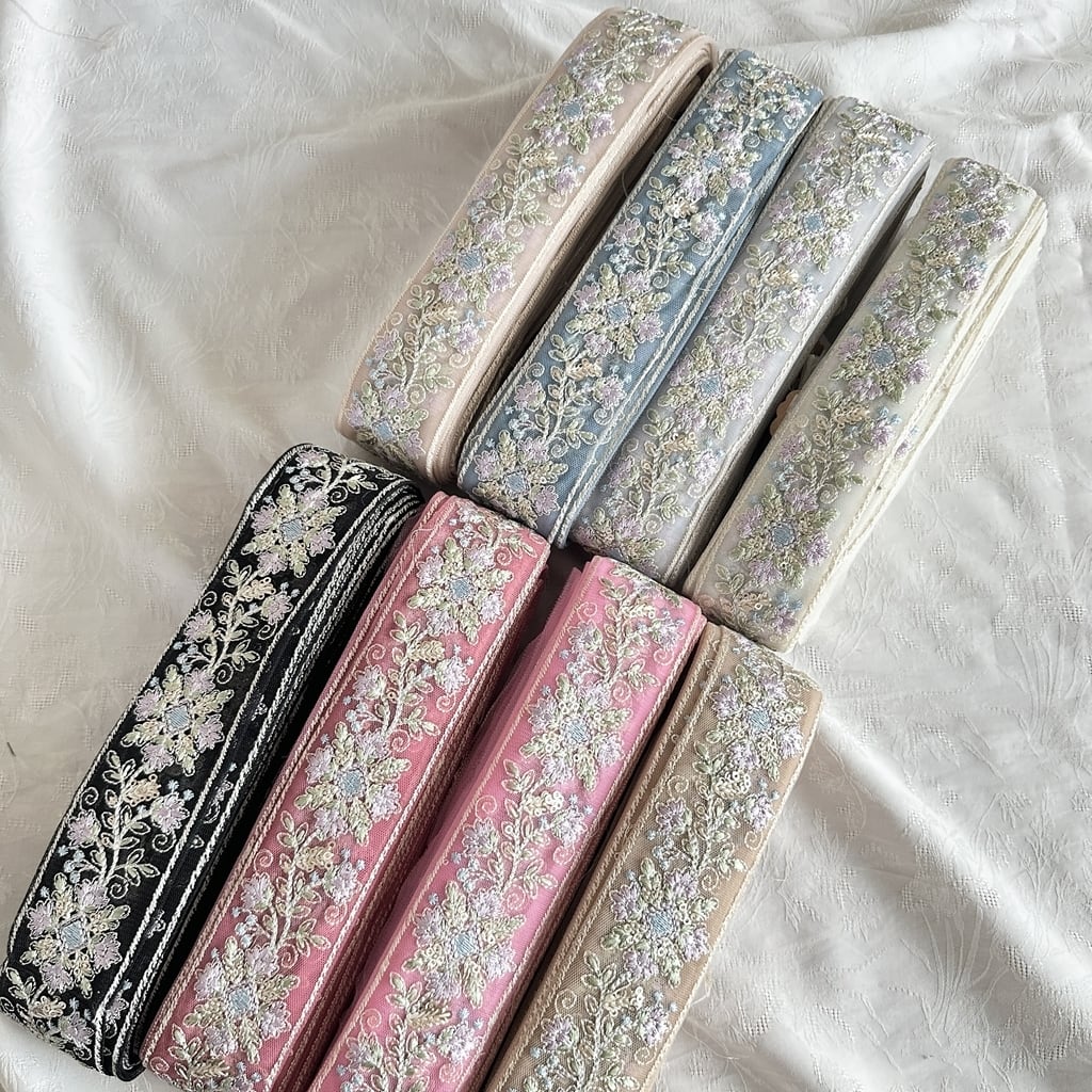 インド刺繍リボンは、細かい刺繍が施されていて色も鮮やかなリボンです。