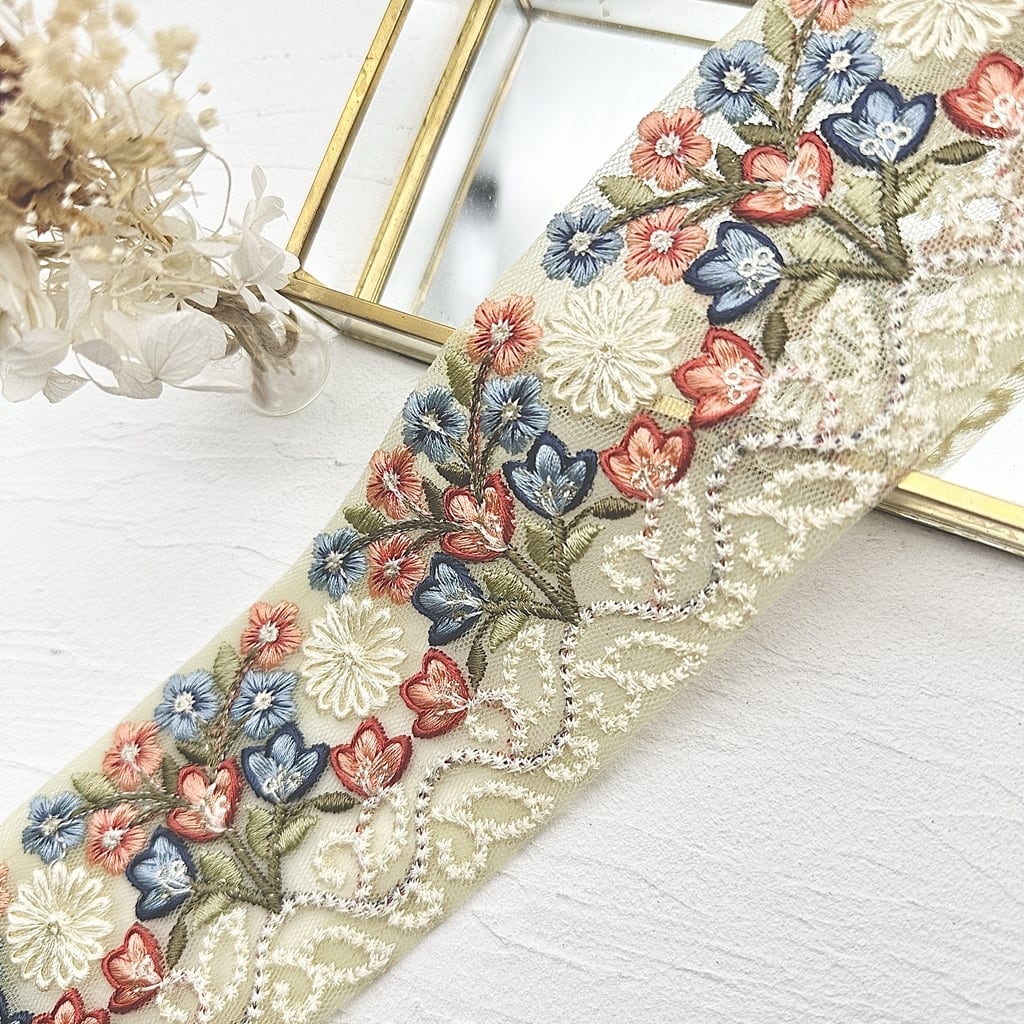 インド刺繍リボンは、細かい刺繍が施されていて色も鮮やかなリボンです。