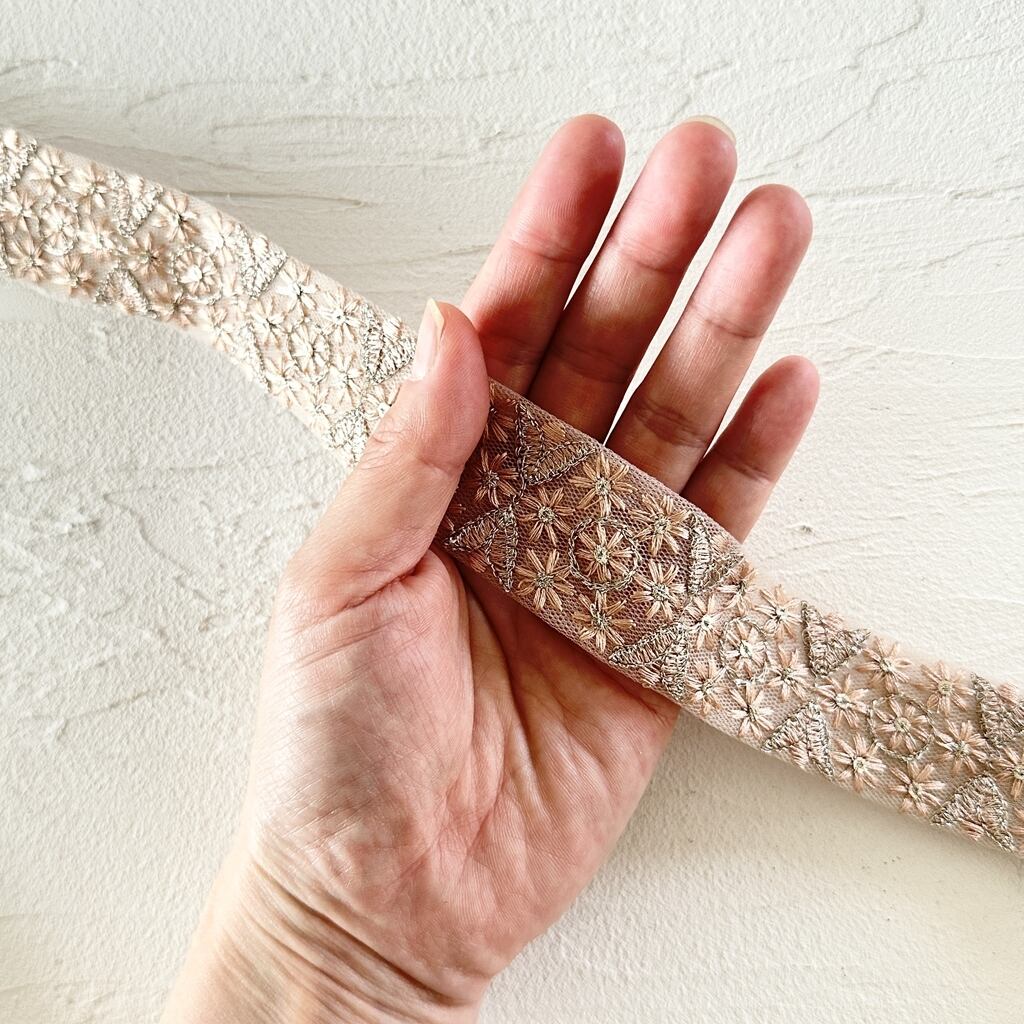 1ロール グレース [ピンクベージュ]インド刺繍リボン 3124-1R