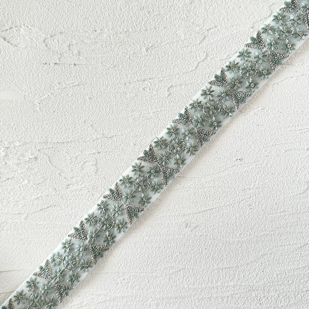 1ロール グレース [エメラルド]インド刺繍リボン 3123-1R