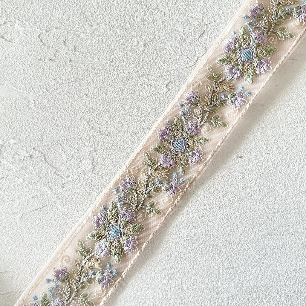 1ロール ライラックシャイン [クリーム]インド刺繍リボン 3091-1R