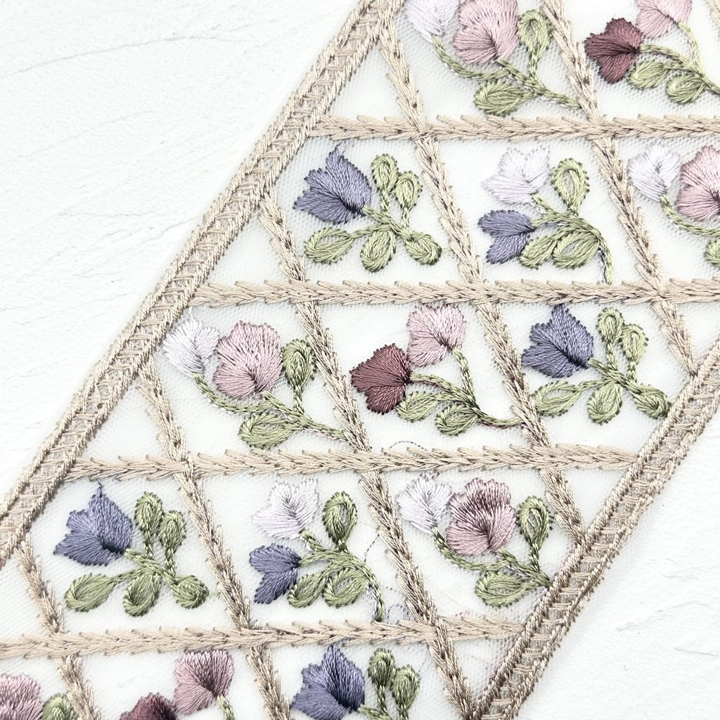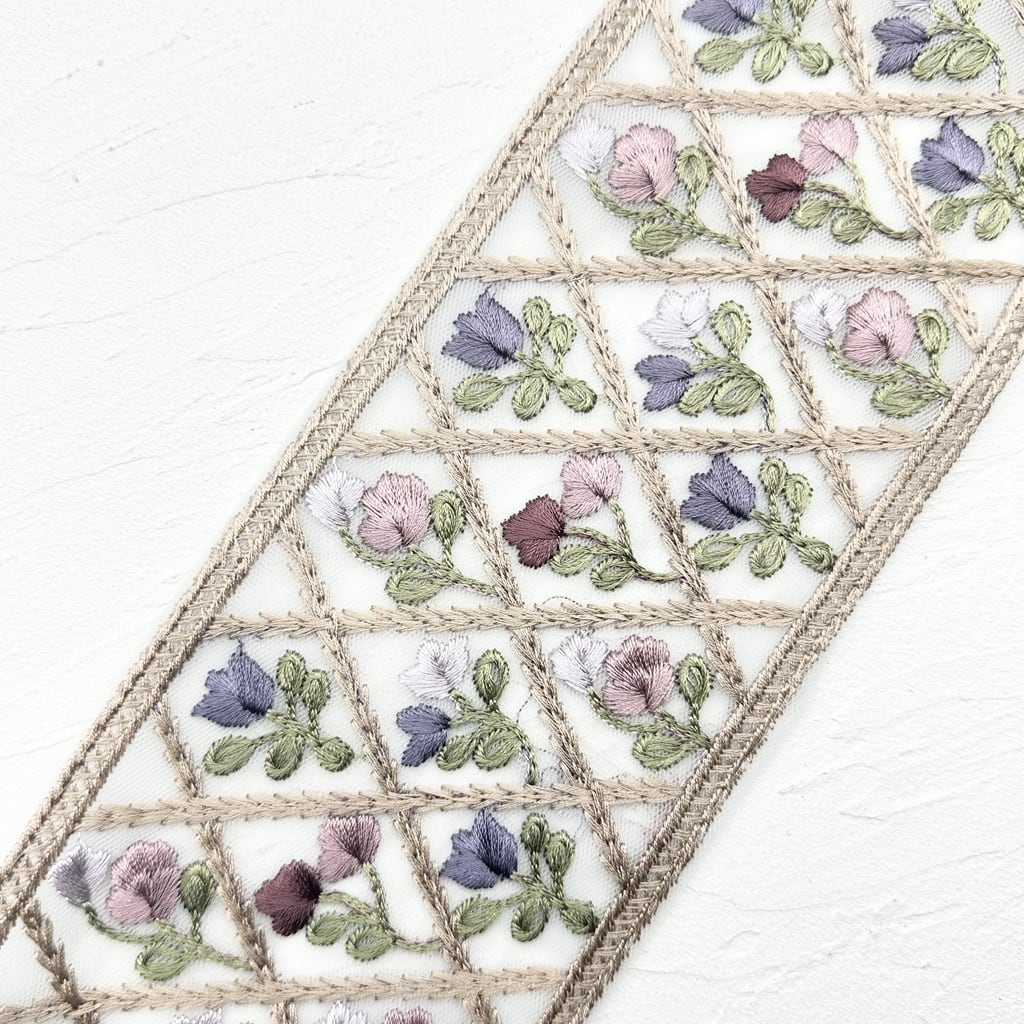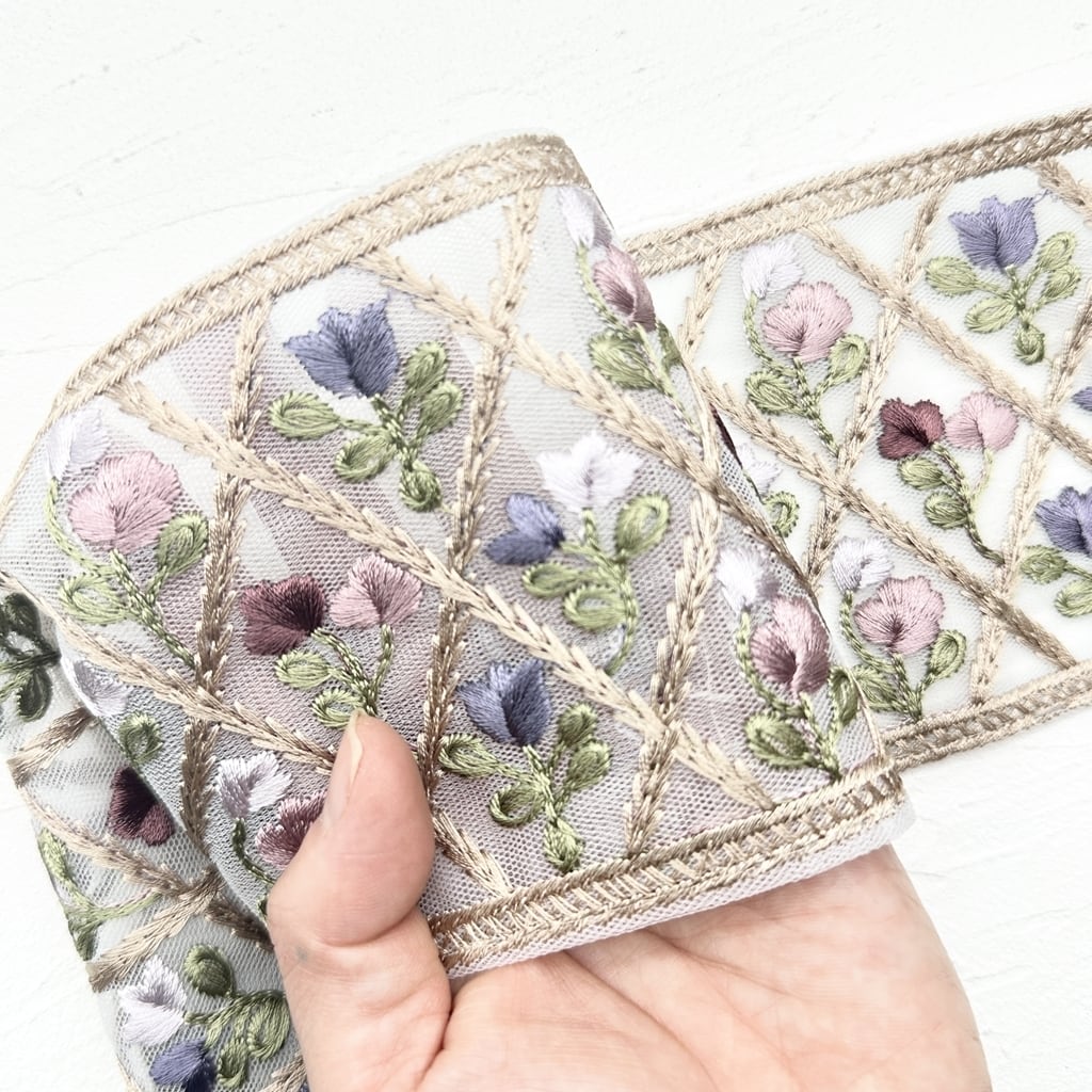 パステルフラワーワイド [パープル]インド刺繍リボン 3064