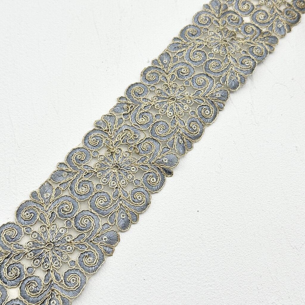 1ロール ロイヤルガーデン [ブルー]インド刺繍リボン 1335-1R