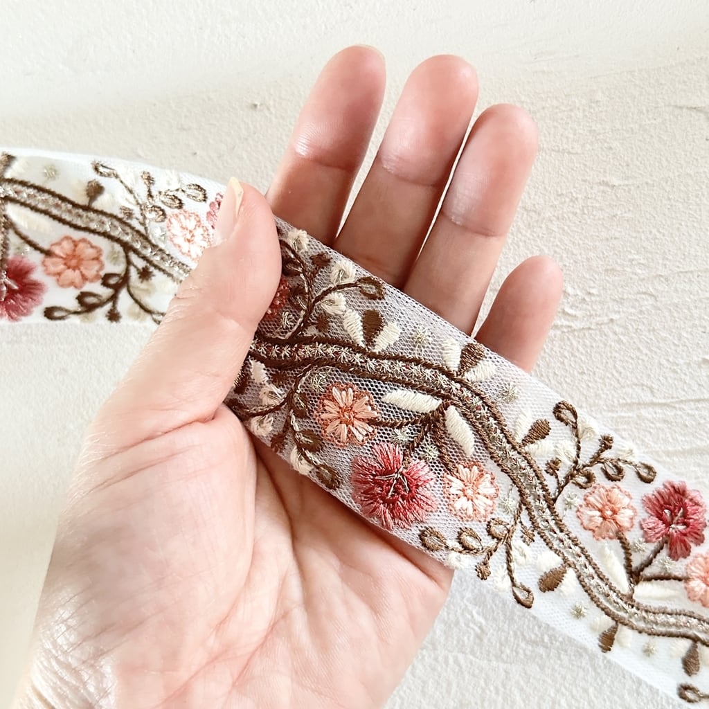 インド刺繍リボンは、細かい刺繍が施されていて色も鮮やかなリボンです。