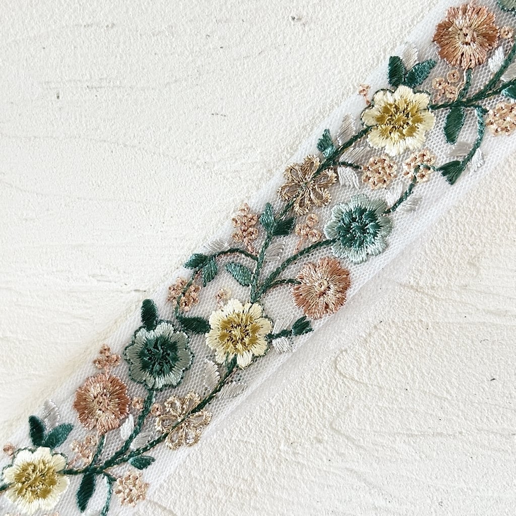 インド刺繍リボンは、細かい刺繍が施されていて色も鮮やかなリボンです。