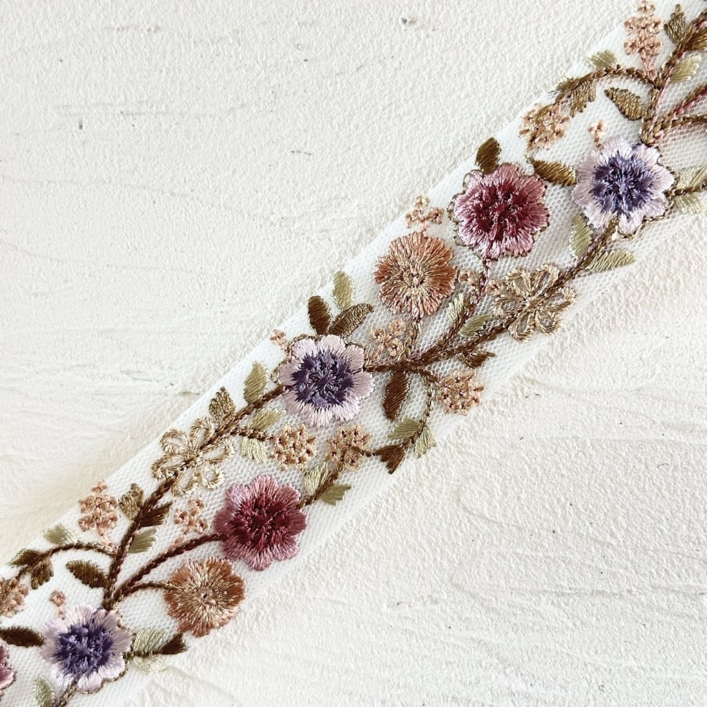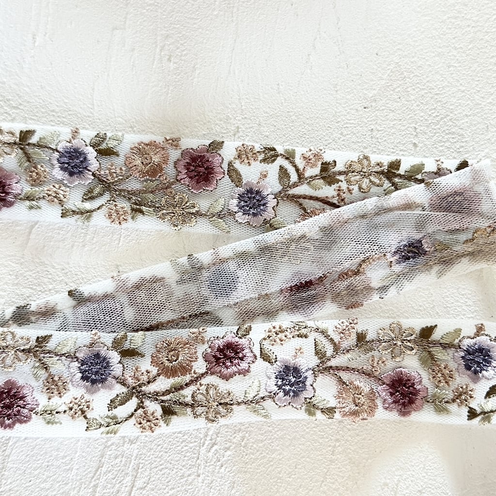 インド刺繍リボンは、細かい刺繍が施されていて色も鮮やかなリボンです。