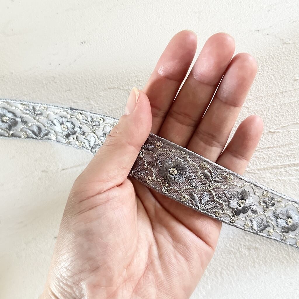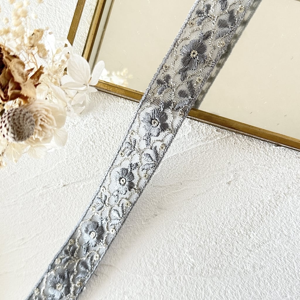 パステルフラワー [くすみブルー]インド刺繍リボン 3189