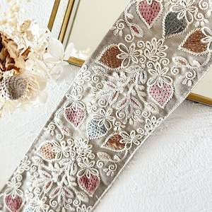 ストロベリー [布グレー]インド刺繍リボン 3203