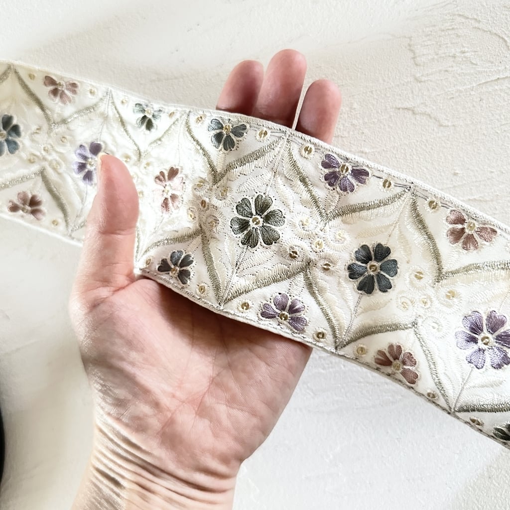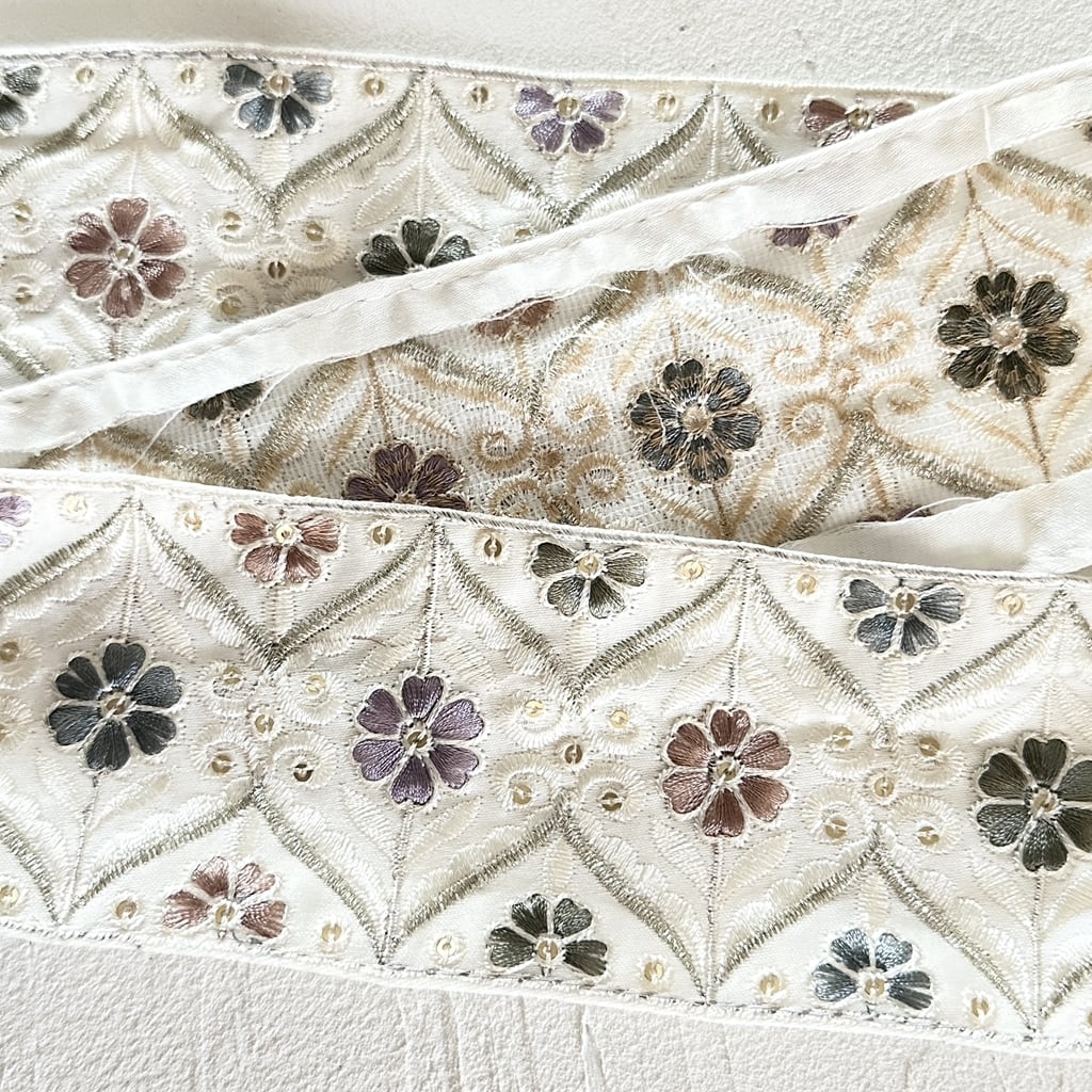インド刺繍リボンは、細かい刺繍が施されていて色も鮮やかなリボンです。