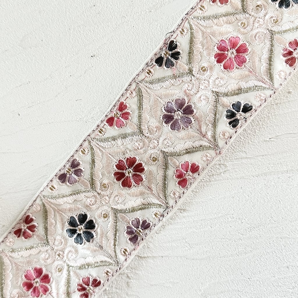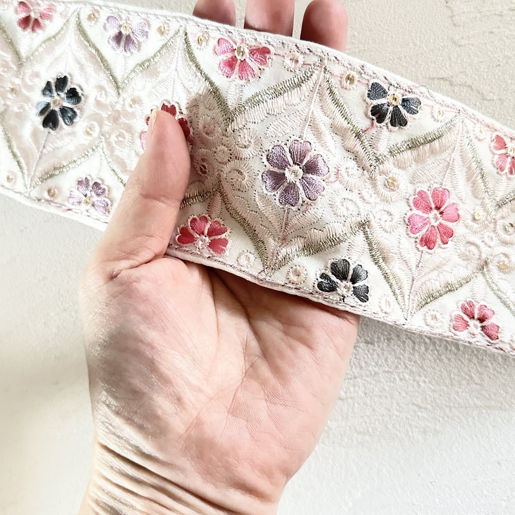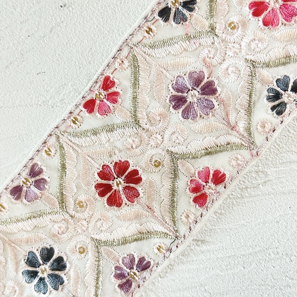インド刺繍リボンは、細かい刺繍が施されていて色も鮮やかなリボンです。