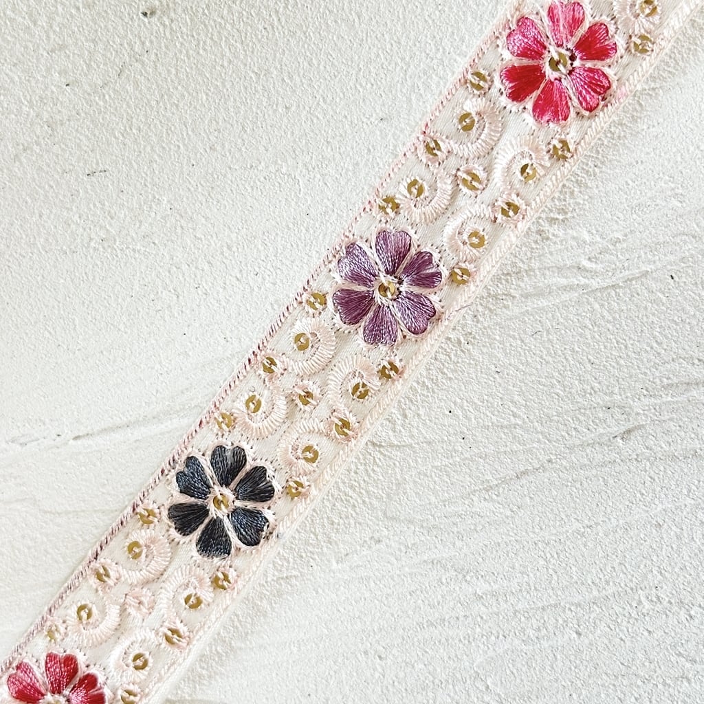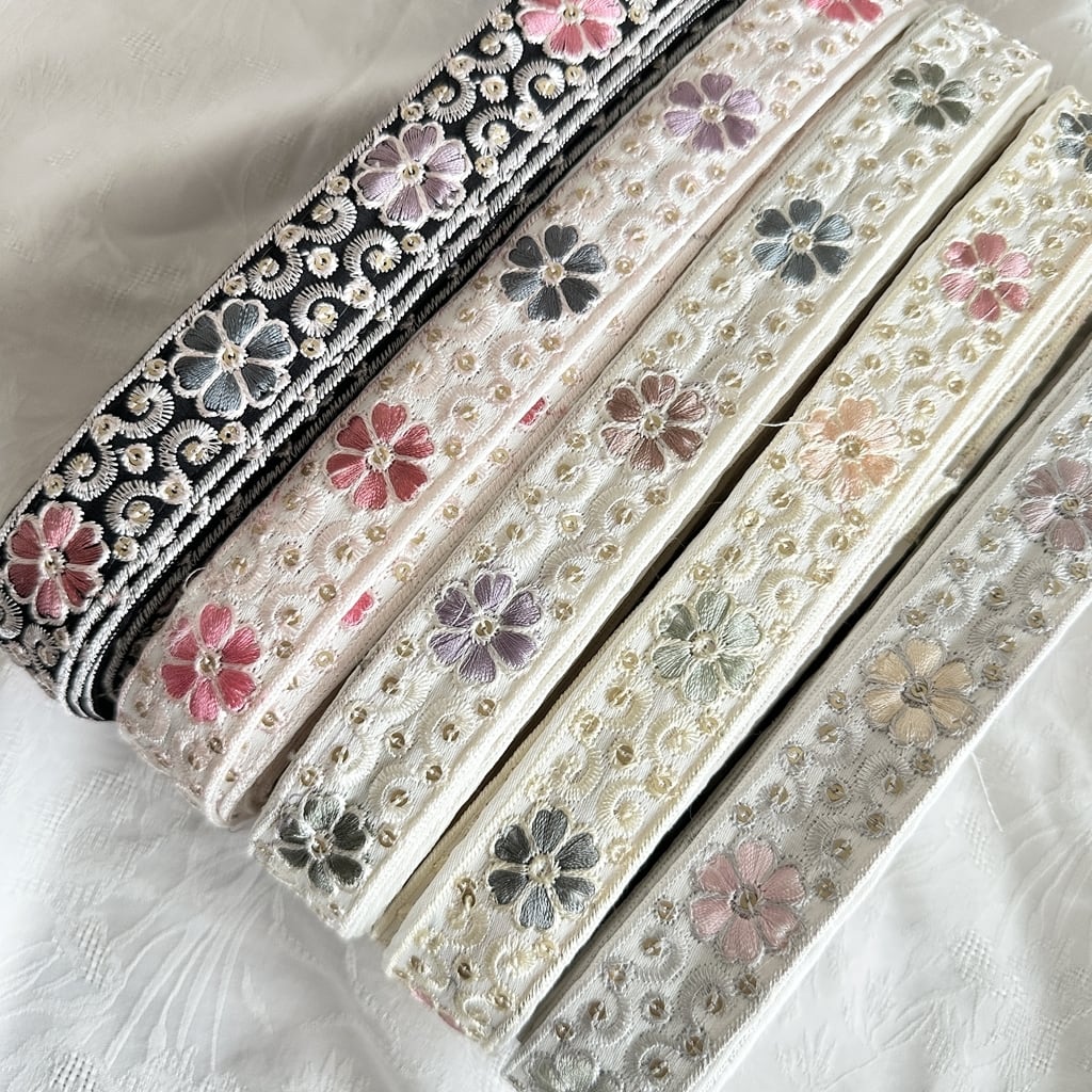 インド刺繍リボンは、細かい刺繍が施されていて色も鮮やかなリボンです。