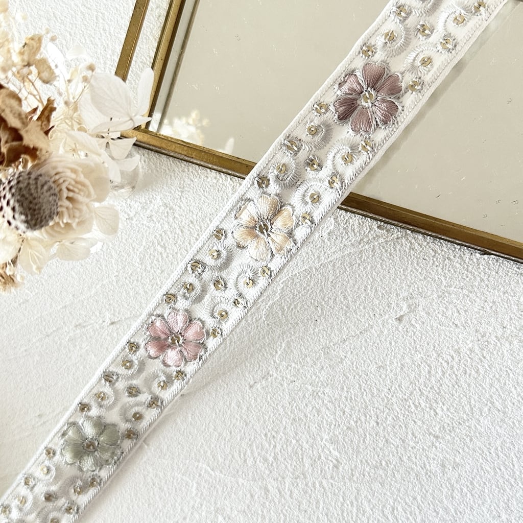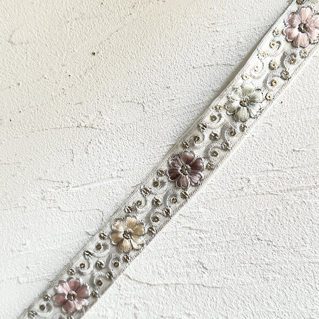 シルクメロディスリム [ピンククリーム]インド刺繍リボン 3215