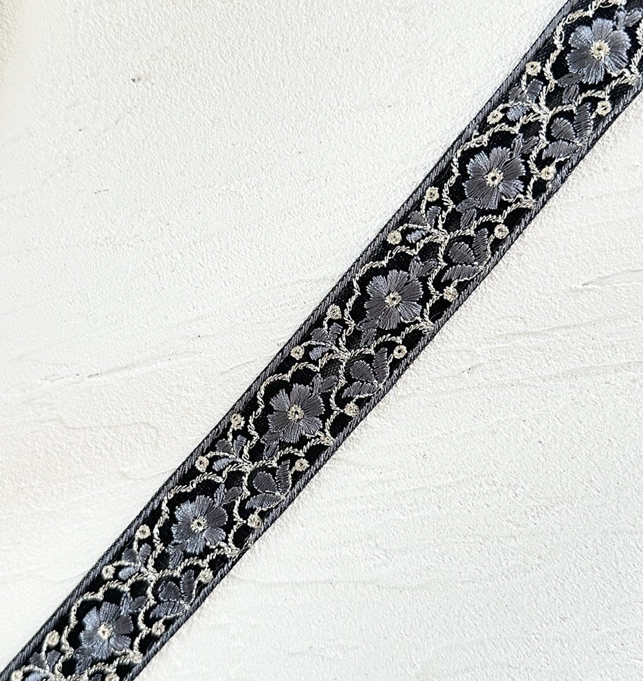パステルフラワー [ブラック]インド刺繍リボン 3187