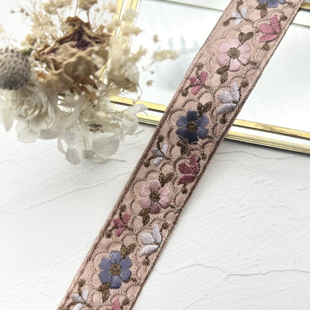 1ロール パステルフラワー [サーモンピンク]インド刺繍リボン 3014-1R