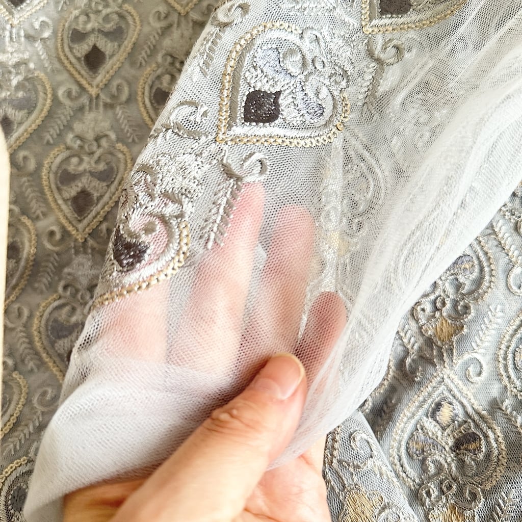 インド刺繍生地 ハート くすみブルー 7129