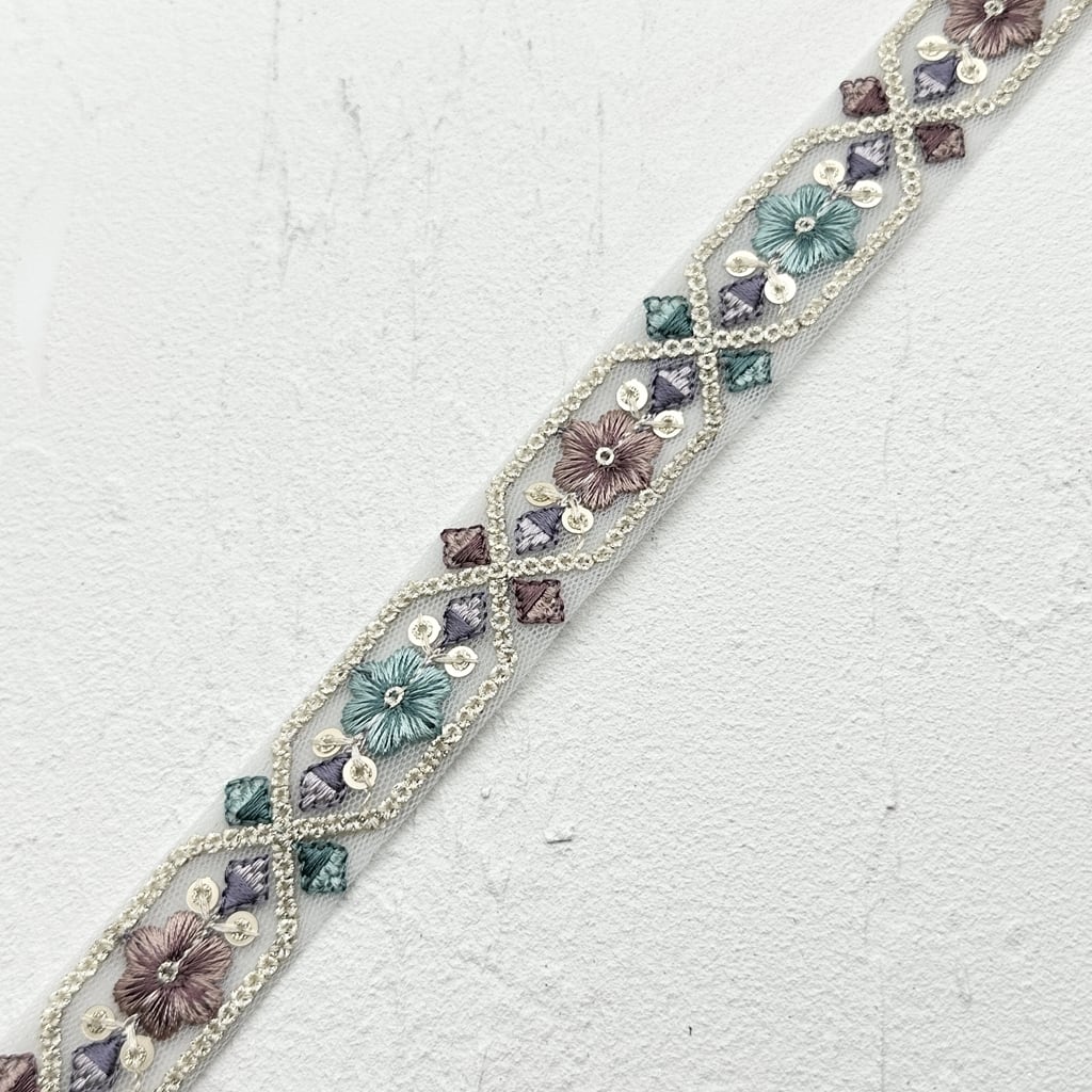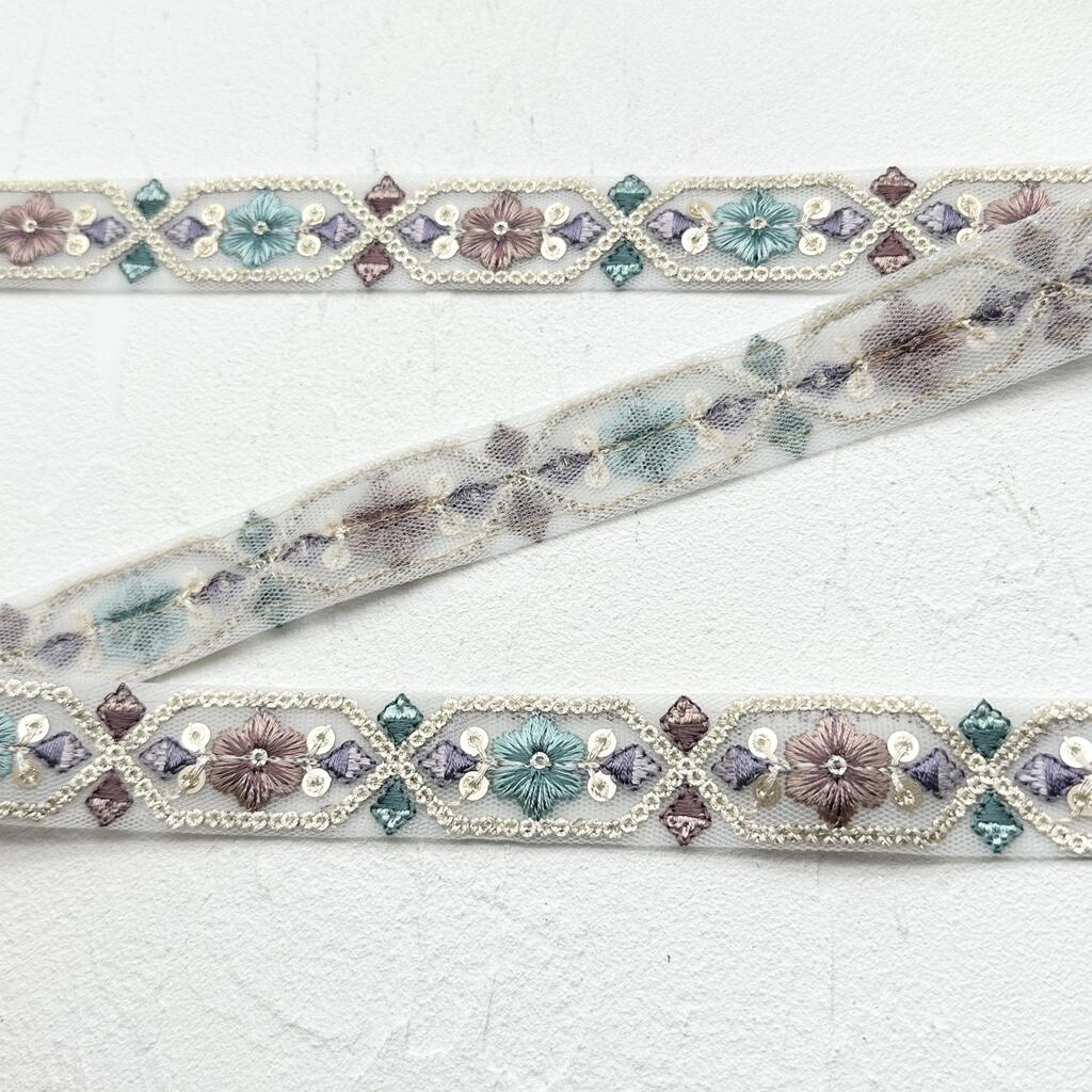 1ロール パステルシャイン[ブルーパープル]インド刺繍リボン 2163-1R