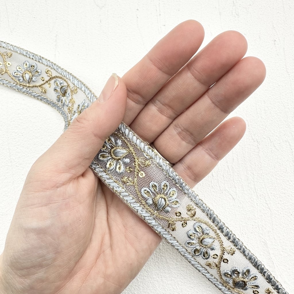 インド刺繍リボンは、細かい刺繍が施されていて色も鮮やかなリボンです。