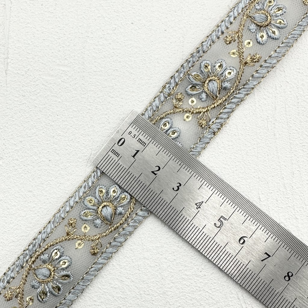 1ロール ウェーブフィズ [サックス]インド刺繍リボン 2683-1R