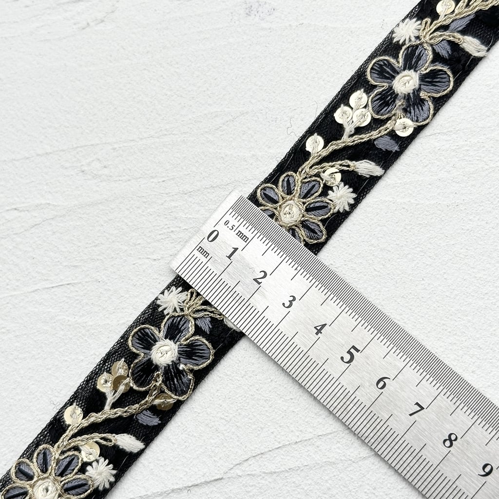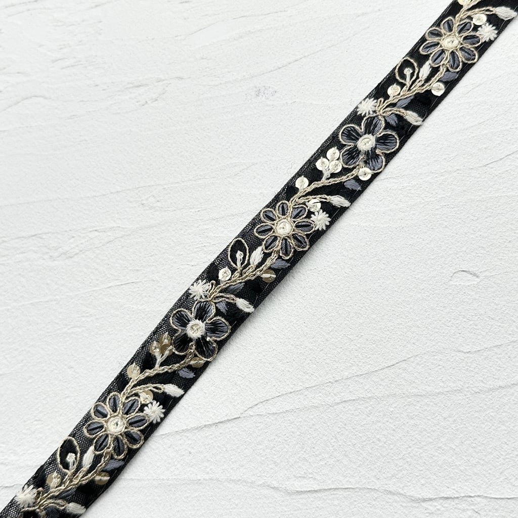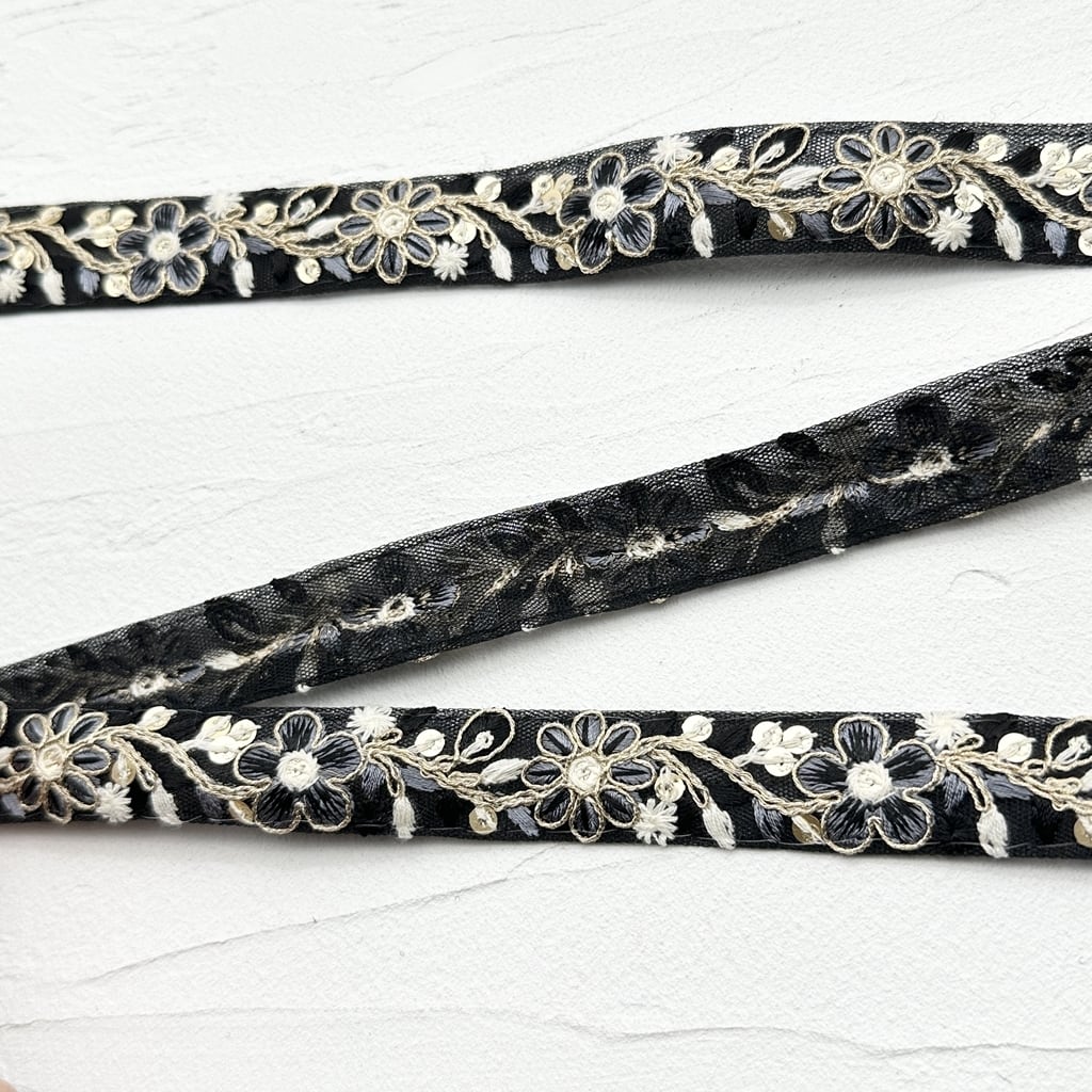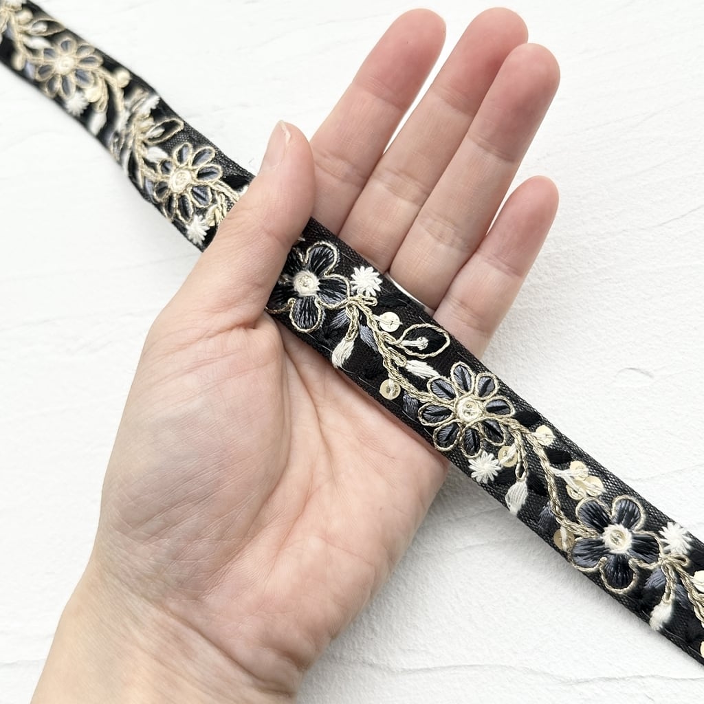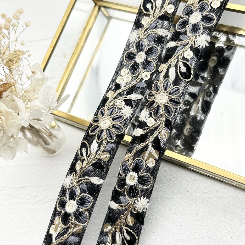 1ロール ロイヤルパステル [ブラック]インド刺繍リボン 2435-1R