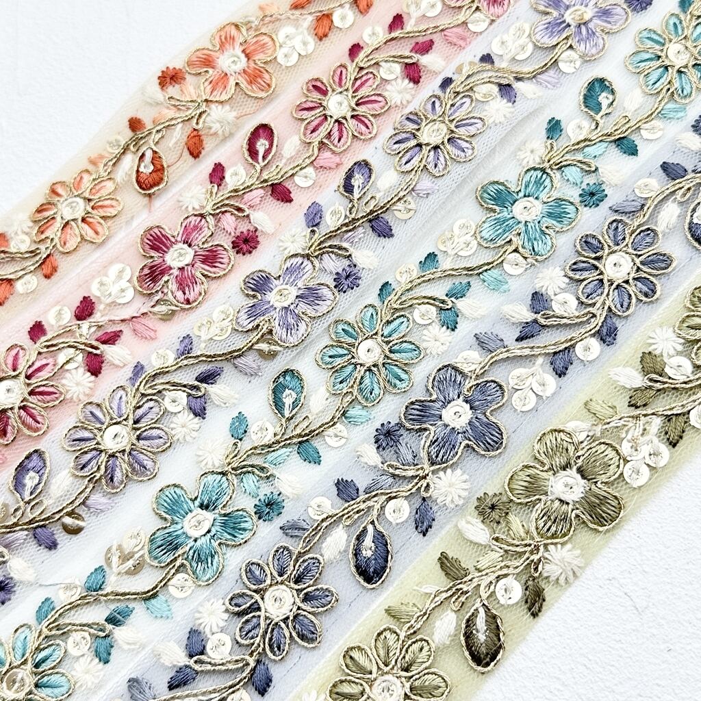 インド刺繍リボンは、細かい刺繍が施されていて色も鮮やかなリボンです。
