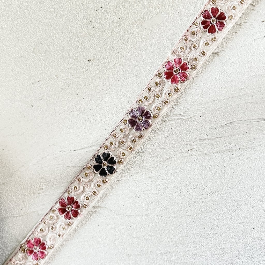 インド刺繍リボンは、細かい刺繍が施されていて色も鮮やかなリボンです。