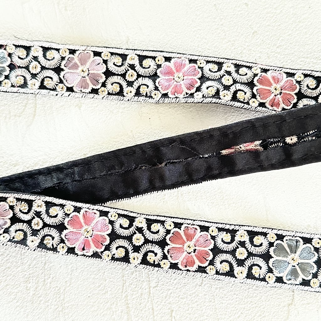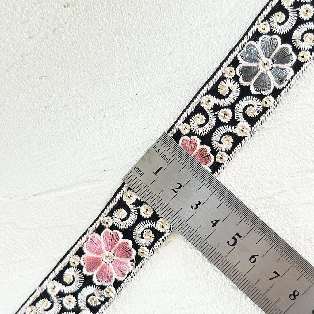 1ロール シルクメロディスリム [ブラック]インド刺繍リボン 3211-1R